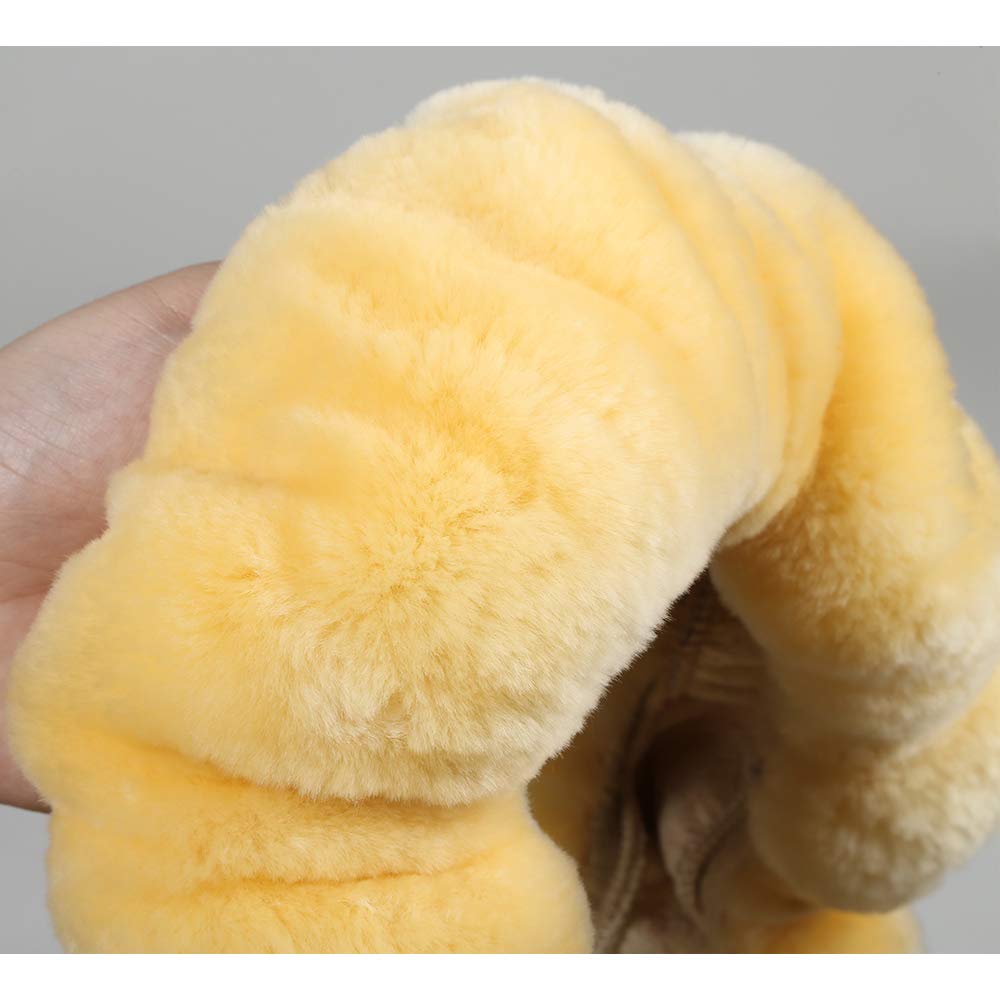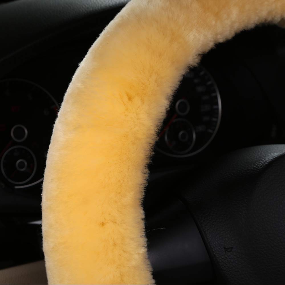 Plush Fuzzy Fluffy Wool Sheepskin Car Steering Wheel Cover For Girls Women Cozy Universal Soft Car Auto 14 1/2-15 1/2Inchs (Gold
