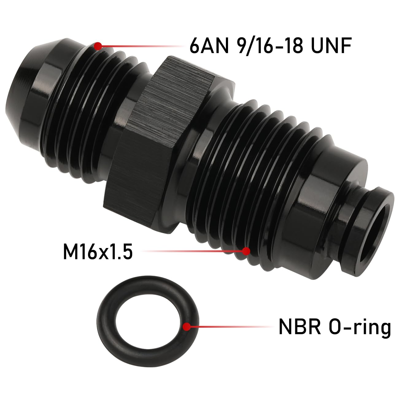 Specifications: Material: 6061 T6 Aluminum Size: 6An (9/16-18 Unf) To 16Mm X 1.5 Surface Treatment: Anodized Black