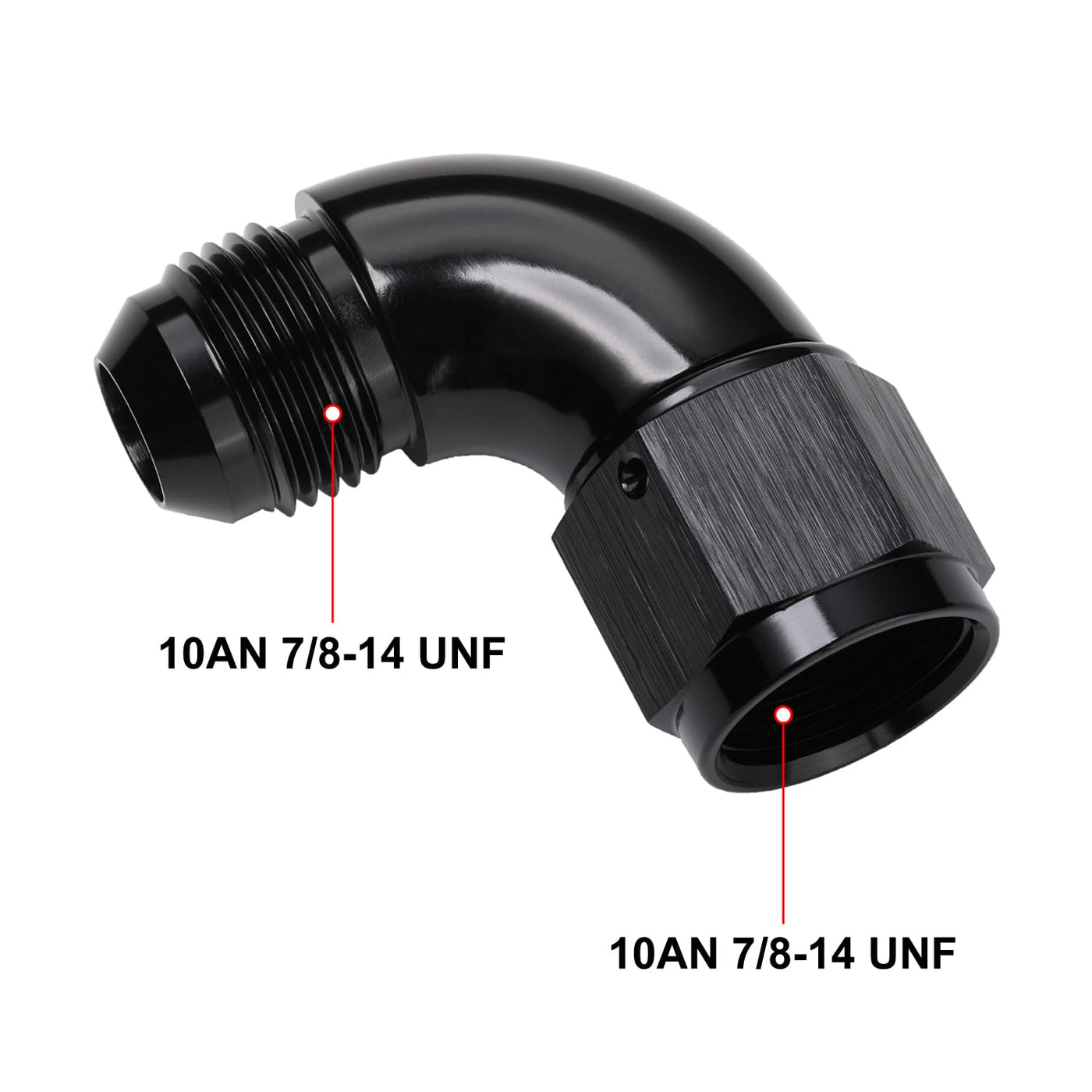 Podavelle 90 Degree 10An Male To 10An Female Swivel Full Flow Fitting Adapter Coupler Aluminum Black