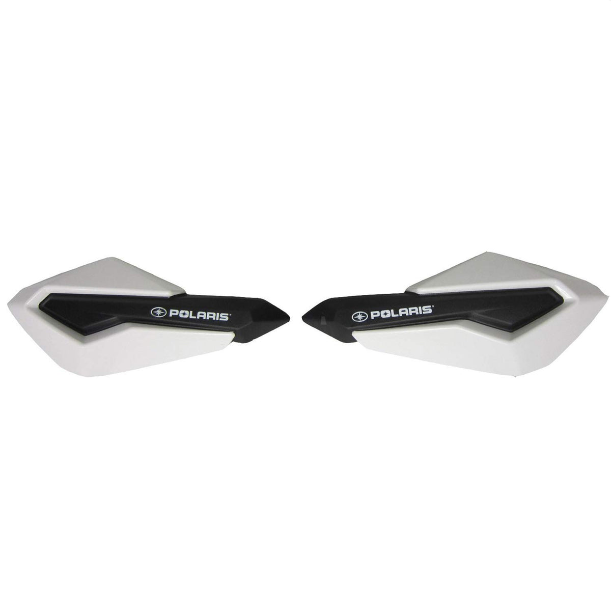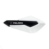 Q: What color are the Polaris Snowmobile Hand Guards?A: The Polaris Snowmobile Hand Guards are available in a sleek white color, designed to complement various snowmobile styles while providing visibility in snowy conditions.