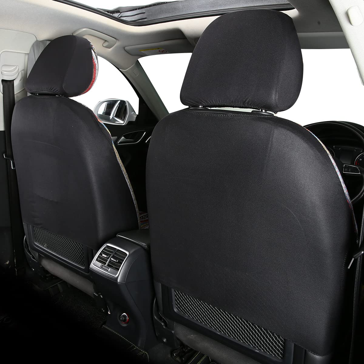 PONYJOYUP Baja Saddle Blanket Car Seat Covers 4PCS Front, Breathable and Washable Striped Woven Automotive Vehicle Seat Cover, U
