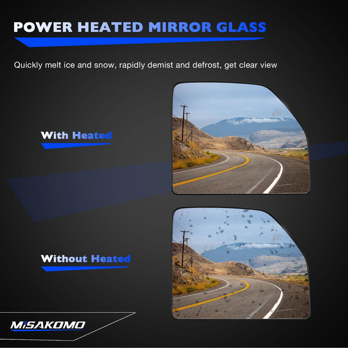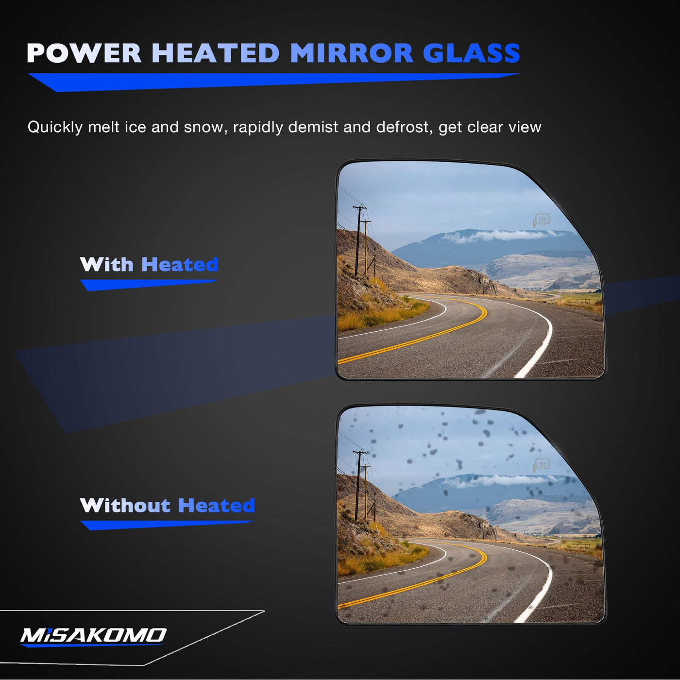 Power Heated Upper Mirror Glass, Compatible with 2015-2022 Ford F150 Truck F250 F350 F450 F550 Super Duty, Replace FL3Z17K707G R