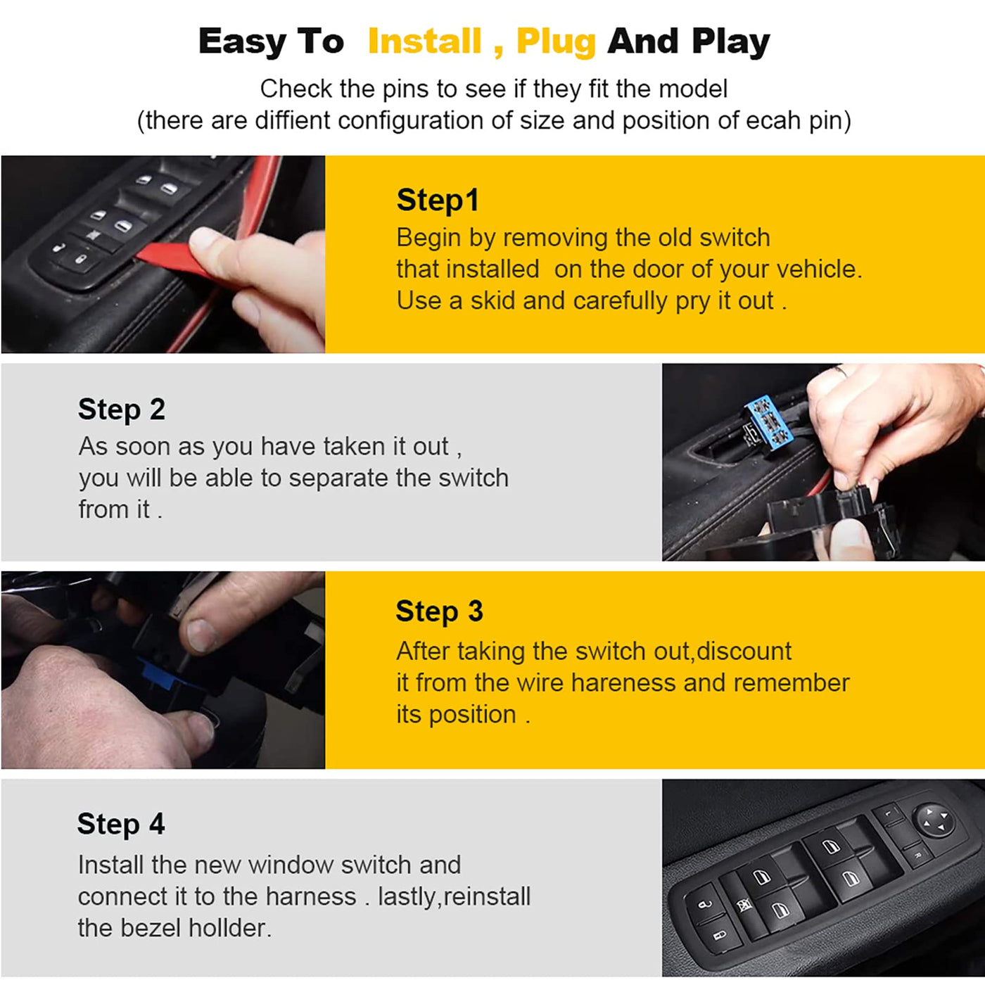 Q: Is the Power Window Switch easy to install?A: Yes, the Power Window Switch is designed for easy installation. It allows you to quickly integrate it into your existing system, saving you valuable time.