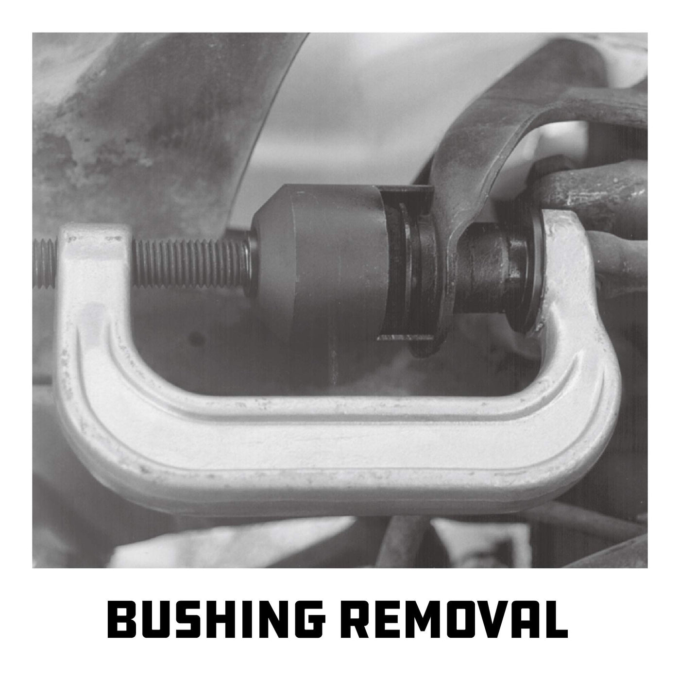 USEFUL ADDITION: Designed for safe efficient removal and installation of upper control arm bushings | VERSATILE: Includes adapters for rear wheel drive Ford, GM, and Chrysler vehicles | UNIQUE DESIGN: Allows bushings to be replaced without the removal of control arm | COMES IN: Heavy duty blow molded case to keep set protected and organized | EASY TO READ: Includes detailed instruction with usage photos