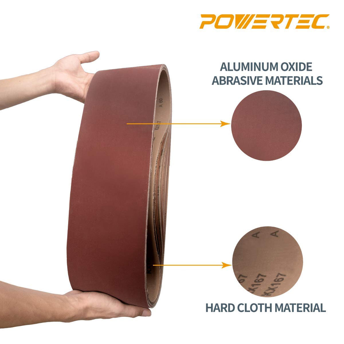 POWERTEC 6 x 48 Inch Sanding Belts, 120 Grit Aluminum Oxide Belt Sander Sanding Belt for Bench Belt Sander, Wood & Paint Sanding, Metal Polishing, (110213), 3 count, Pack of 1