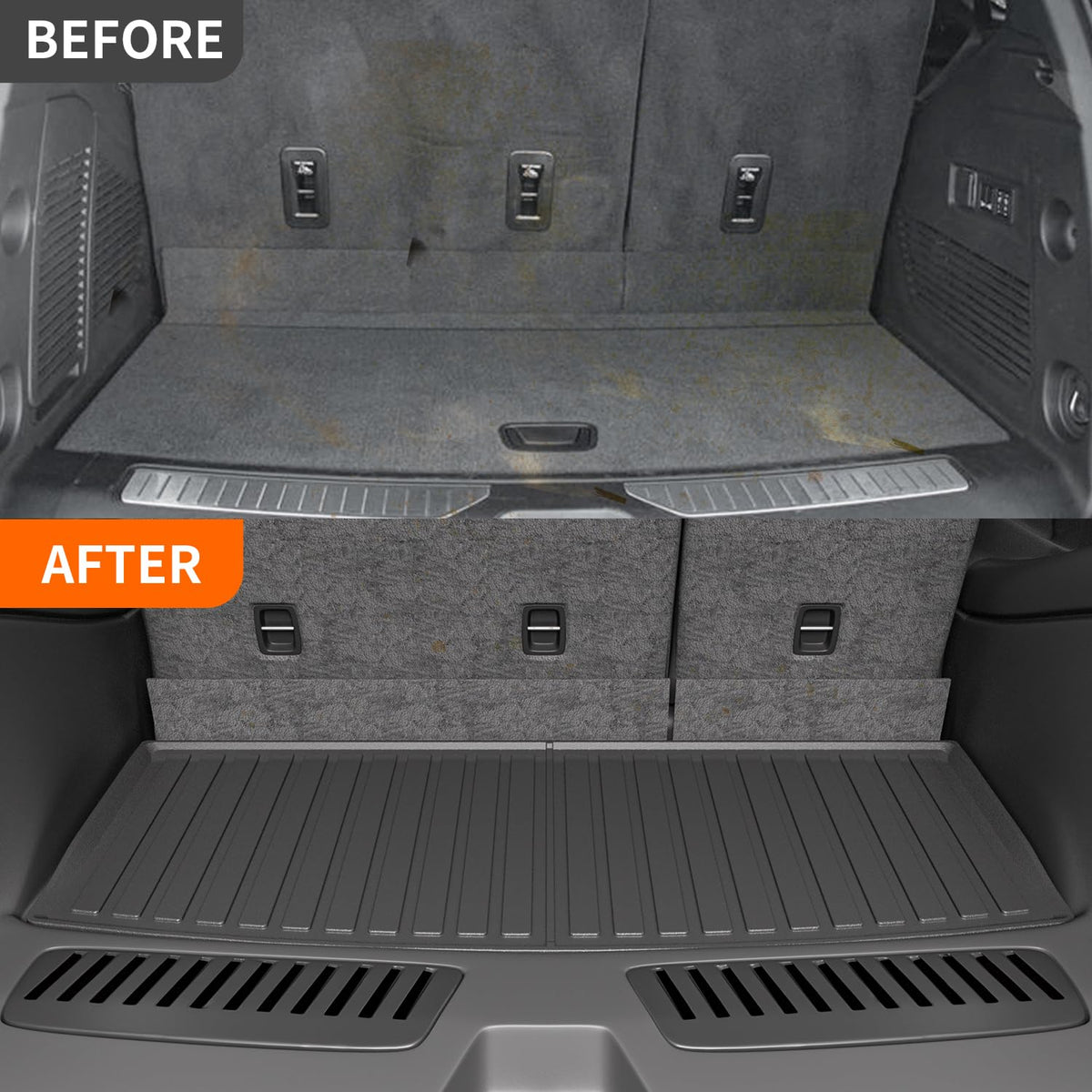 Exclusive Fitment:Our trunk mat is compatible with 2022 2023 2024 2025 Chevy Tahoe/GMC Yukon behind the 3rd row.Attention: not fit Yukon XL Models and not fit Suburban Models.Please confirm the model year before purchasing. High-Quality Material: The cargo liner is made of high quality TPE material, which is scratch-resistant, durable,and have no bad smell.Even if you fold it hard, it will not be easily spoiled.Our trunk liner can withstand all kinds of extreme weather, such as heavy rain or snowstorm days, etc. You can clean the mats with water and a rag. Efficient Function: The cargo mat can make your car look new. Good material can effectively increase the friction and reduce the impact brought by the item,then protect the safety of the car and items. At the same time, it can reduce the damage to the car. The driver can drive the vehicle with peace of mind and enjoy the journey. Simple Installation: Our mat is very easy to install.You do not need additional tools to assist in installation,just put it in the right place. Satisfactory Warranty: If you meet any problems with the trunk mat replacement for 2022 2023 2024 2025 Chevy Tahoe/GMC Yukon, please email us. We will provide you with after-sales service.