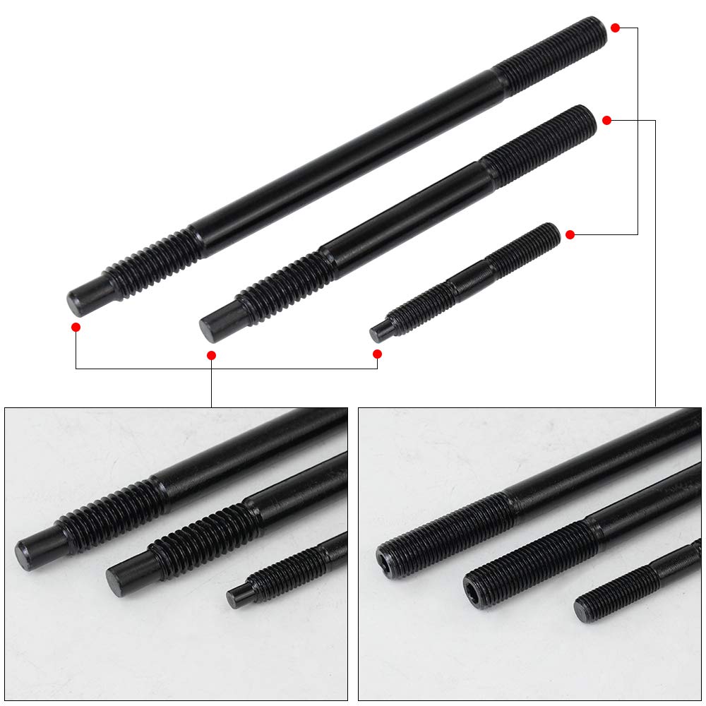 Q: What materials are the head studs and bolts made of?A: The head studs and bolts are made from iron with good ductility and feature a black oxide finish, providing high temperature resistance and durability.