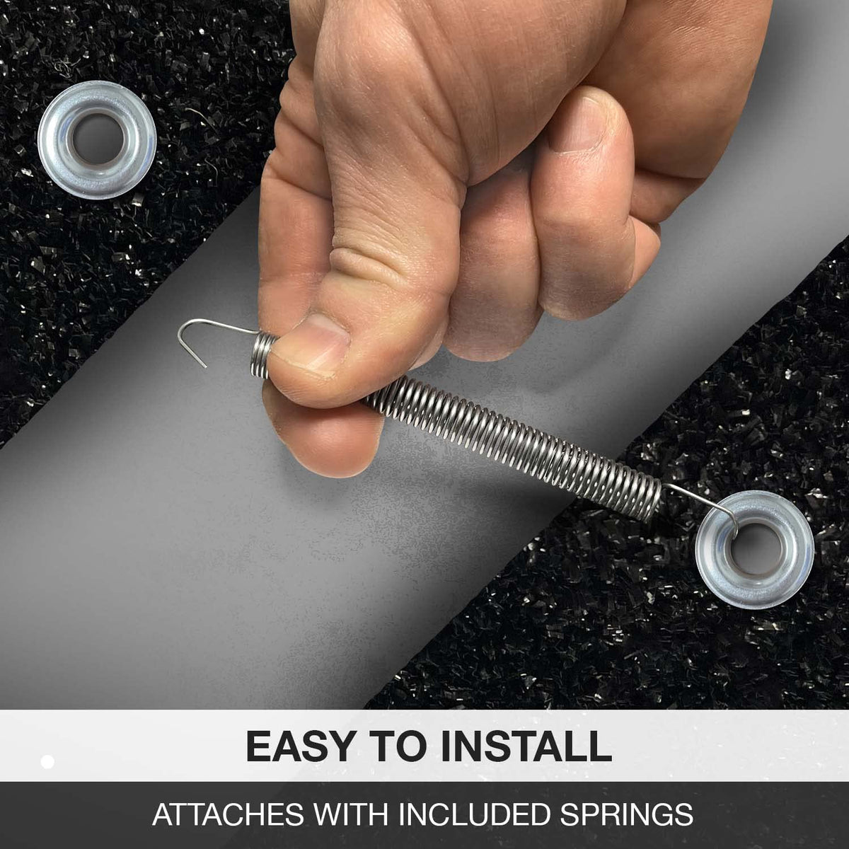 Wraparound brand RV step Rugs protect your interior while accenting your exterior. Each durable, weather resistant rug is made of easy-to-clean UV-protected outdoor turf with marine backing. Easy to install, fitting most manual and electric steps with springs included. Available for straight and radius RV steps in a variety of sizes and colors. Black.