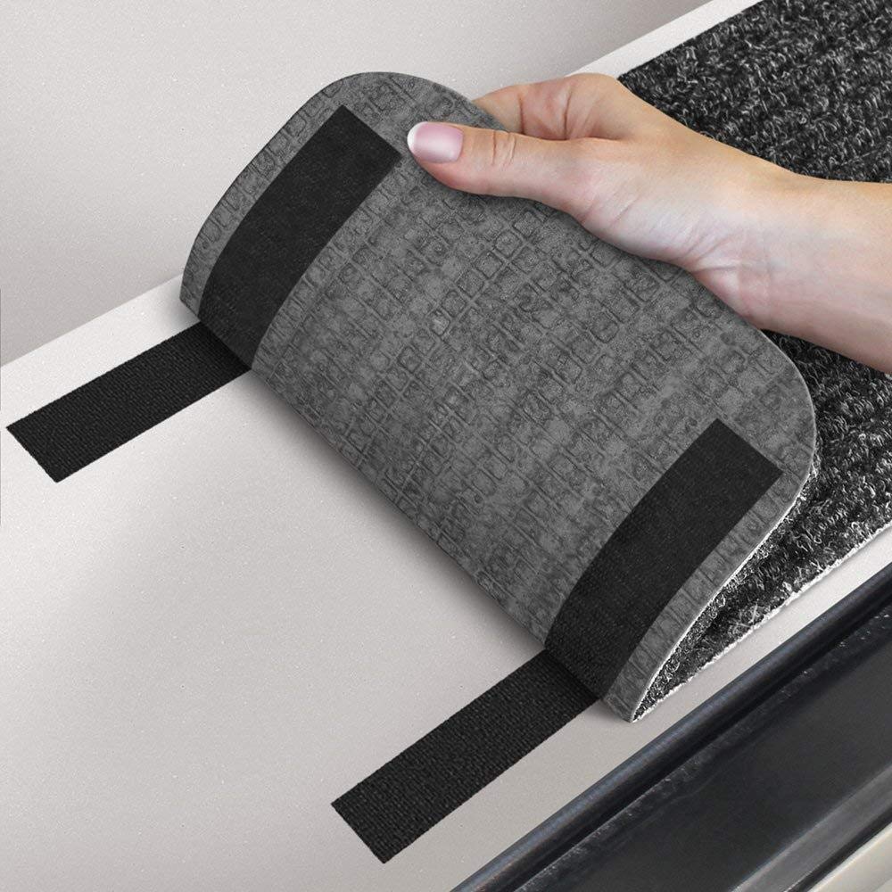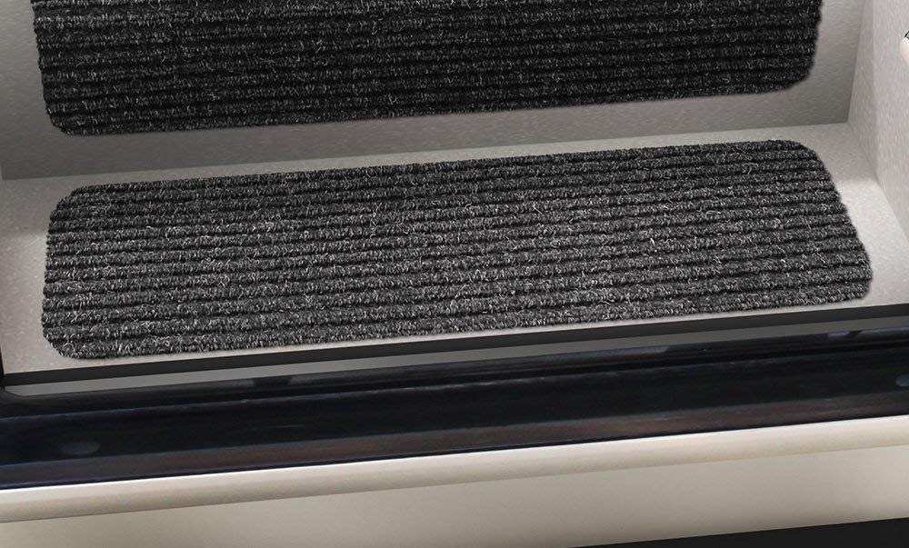 Decorian Step Huggers for RV Landing Steps help protect your interior and can be removed and reattached as needed. Easy to install, these rugs securely fasten to most hard stair surfaces with hook-and-loop fastening strips. Made of heavy-duty olefin carpet with a ribbed texture to trap dirt and mud. Made in the U.S.A.