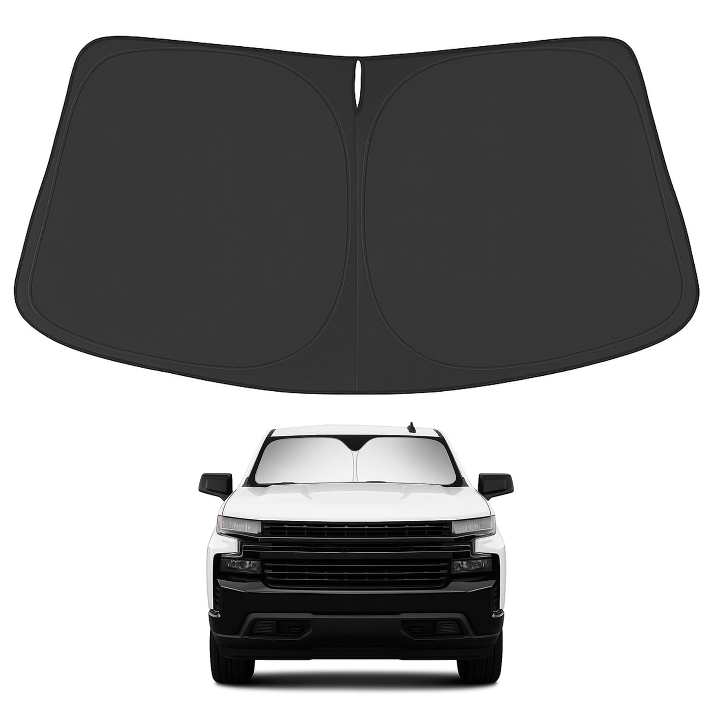Windshield SunshDesigned in USA!!! CUSTOM DESIGN: The front windshield shade has been custom cut specifically for Chevy Silverado 1500. Precise fit design and Reinforced steel rings make enough to make the shade fit precisely to the window, no need to use suction cups to hold it in place. It won't sag or collapse like other car heat shields. Fits for 2025 2024 2023 2022 2021 2020 2019 Silverado 1500.ade for Chevy Silverado 1500
