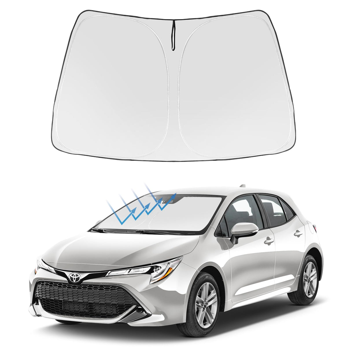 Q: Can this sunshade help protect my car's interior?A: Yes, this windshield sunshade helps keep your Toyota Corolla cooler by reducing heat buildup up to 40°F, which protects leather seats from cracking and fading due to prolonged sun exposure.