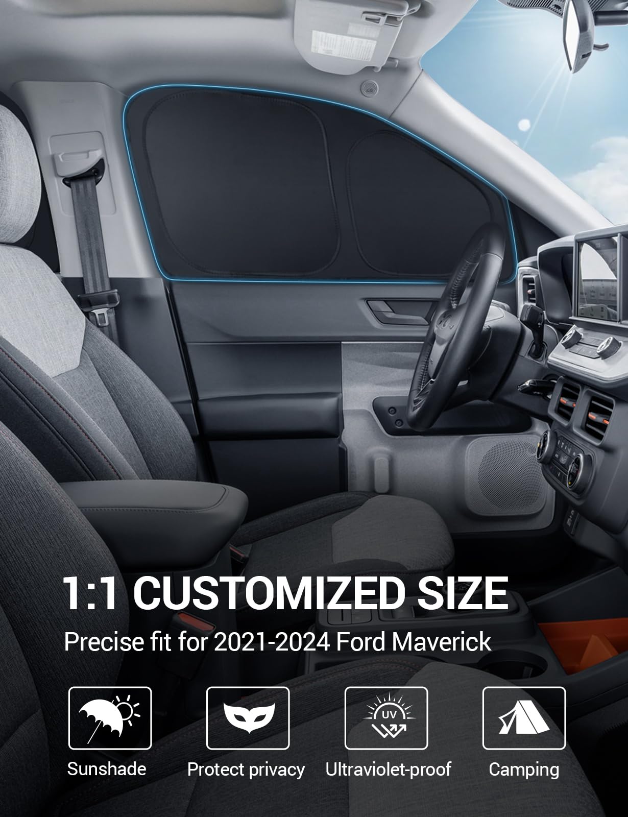 Proadsy 2025 Upgrade Window Sun Shade For Ford Maverick 2021-2024 2025 Side Rear Window For Baby/Camping Uv Rays And Privacy Pro