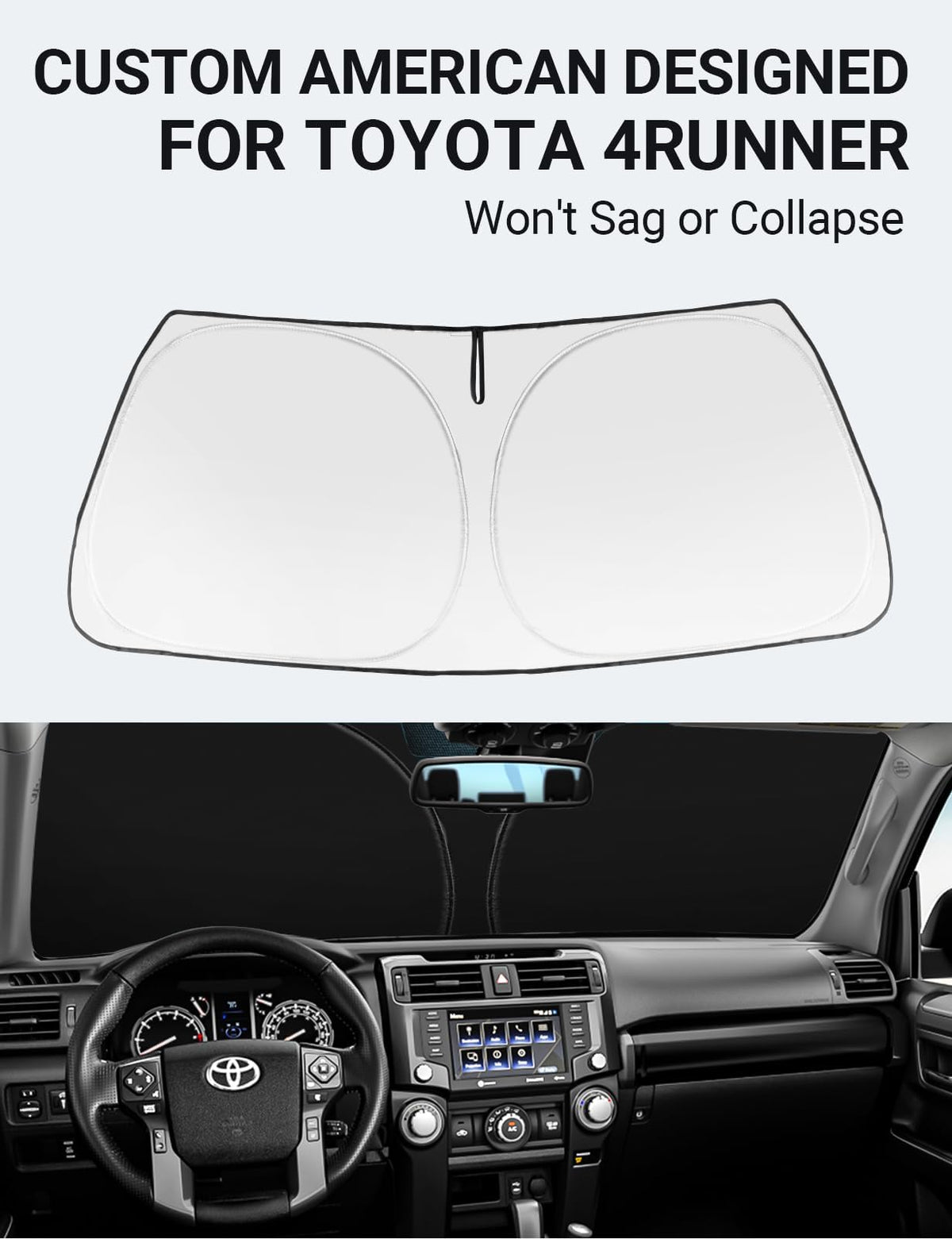 Proadsy 2025 Upgrade Windshield Sun Shade Custom Fit 4Runner 2010-2024 2025 4-Runner 5Th Gen Suv, Sr5 Trail Limited Foldable Front Sunshade Protector Blocks Uv Rays Keep Car Cooler