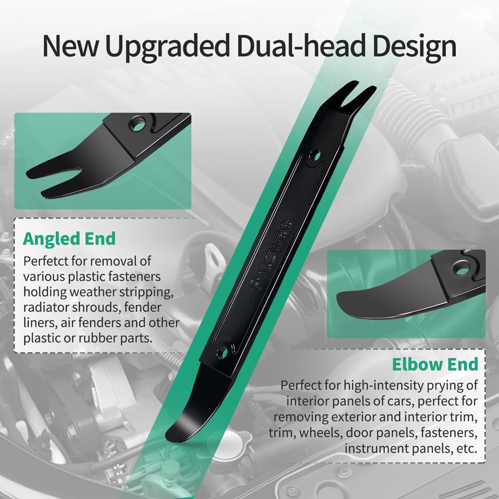 Q: Can this trim removal tool be used on interior and exterior car panels?A: Yes, the Prozwee Trim Removal Tool is designed for both interior and exterior panels, effectively removing trim, fasteners, and other components without damaging the vehicle.