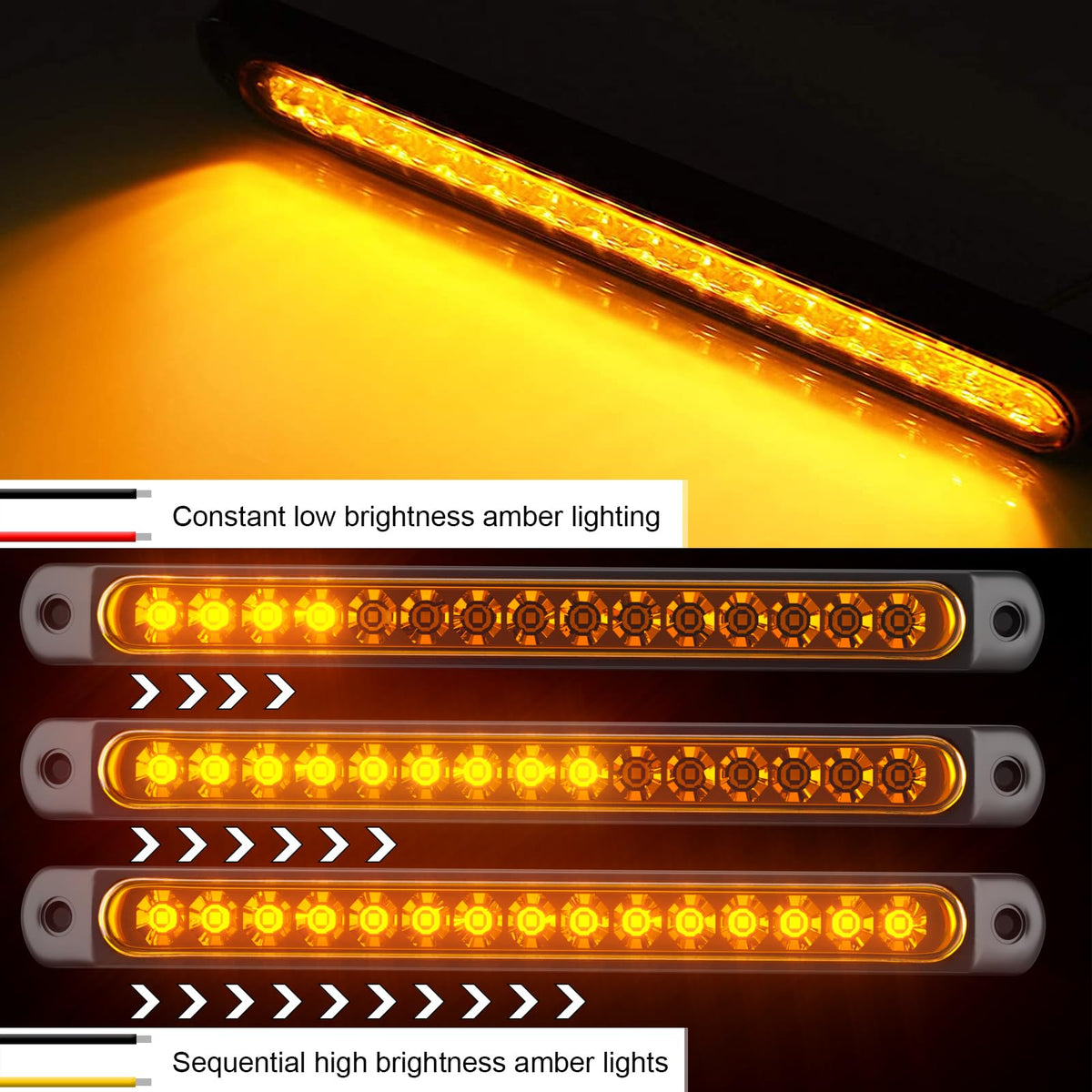 Pseqt 10'' 15 Led Trailer Turn Tail Light Bar - Amber Sequential Signal Marker Assembly With Identification Clearance Strip - Wa