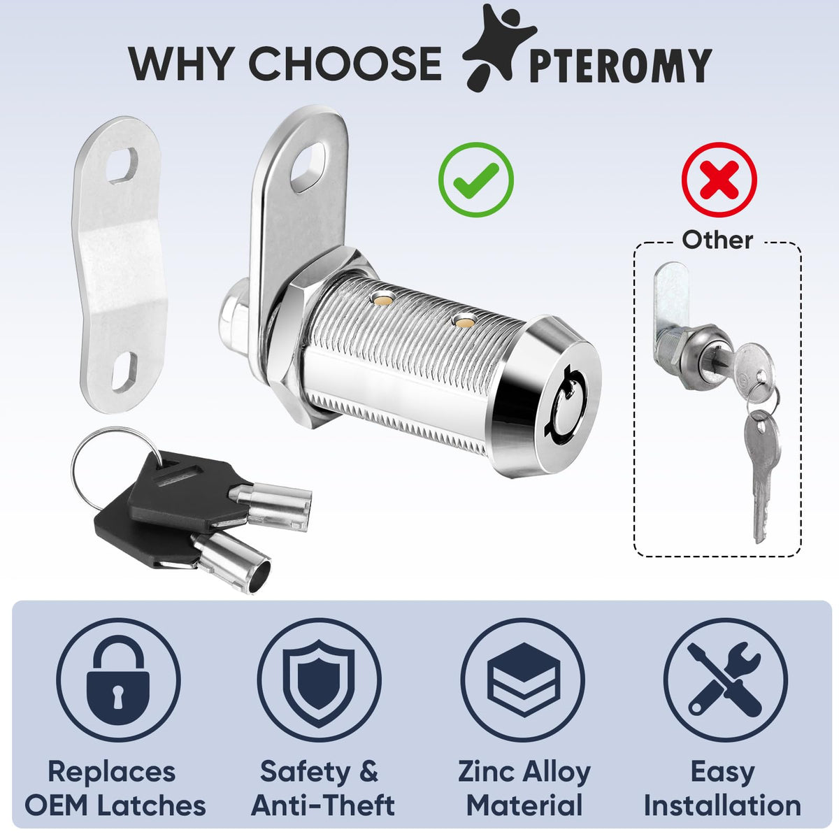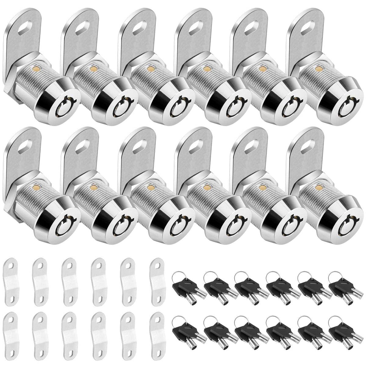 Pteromy 12 Pack Cabinet Locks With Keys - 5/8 '' Heavy Duty Tubular Cam Locks For Rv Compartment Storage, Full Set (Chrome, 12 P
