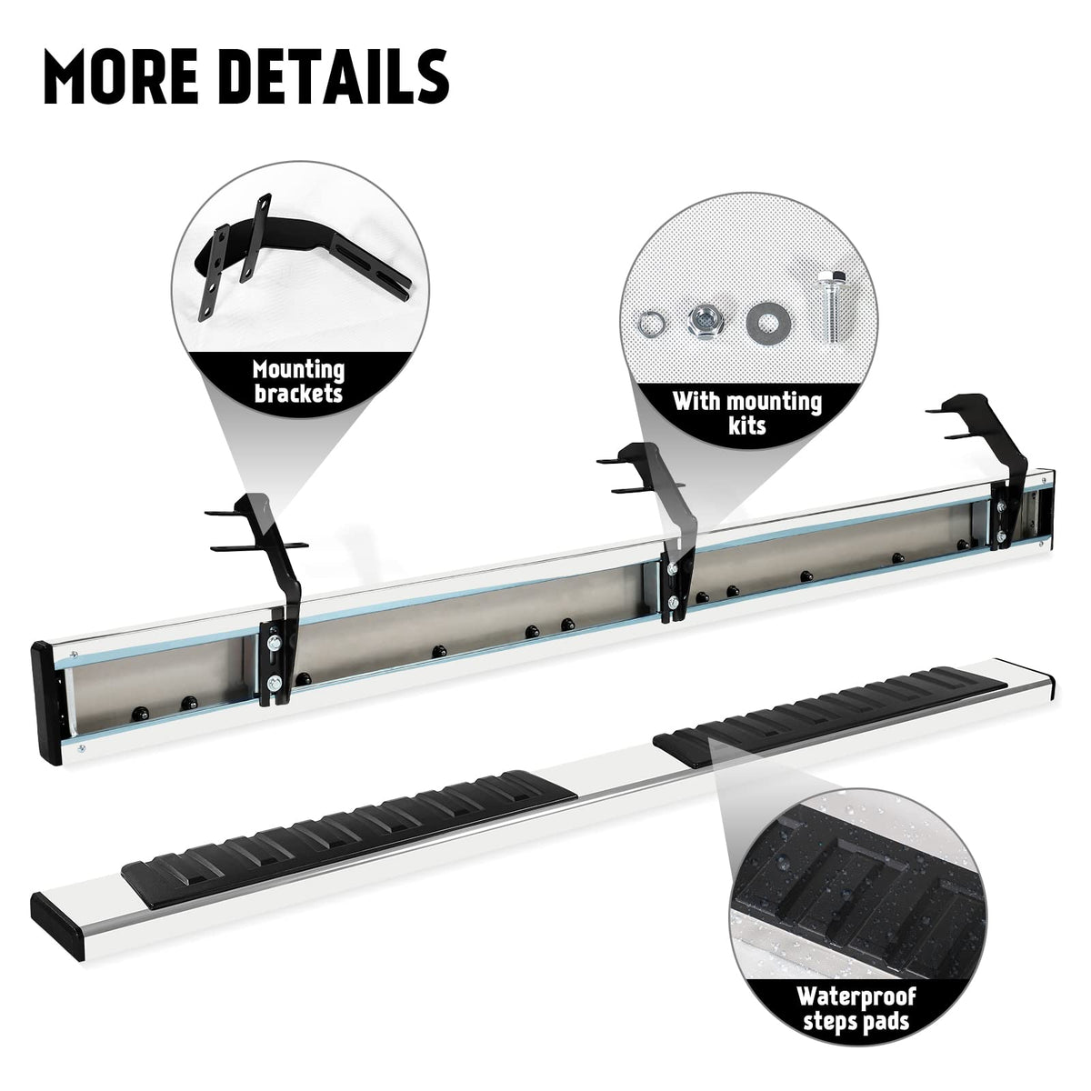Fitment Compatible With 2015-2024 Ford F-150 SuperCrew Cab 4-Door 2017-2024 Ford F250 F350 Super Duty Crew Cab Features Provides a secure and convenient step for passengers to enter and exit the vehicle Protects the vehicle from damage caused by rocks and debris on the road Made of durable materials Easy to install Comes with all necessary hardware and instructions Upgrade Your Vehicle With this Step Bar, you can upgrade your vehicle and enjoy the added convenience and protection it provides. Installation is easy and all necessary hardware and instructions are included. Perfect for High Ground Clearance Vehicles If you have a vehicle with high ground clearance, this Step Bar is a necessary addition. It provides a secure and convenient step for passengers to enter and exit the vehicle, while also protecting the vehicle from damage caused by rocks and debris on the road.