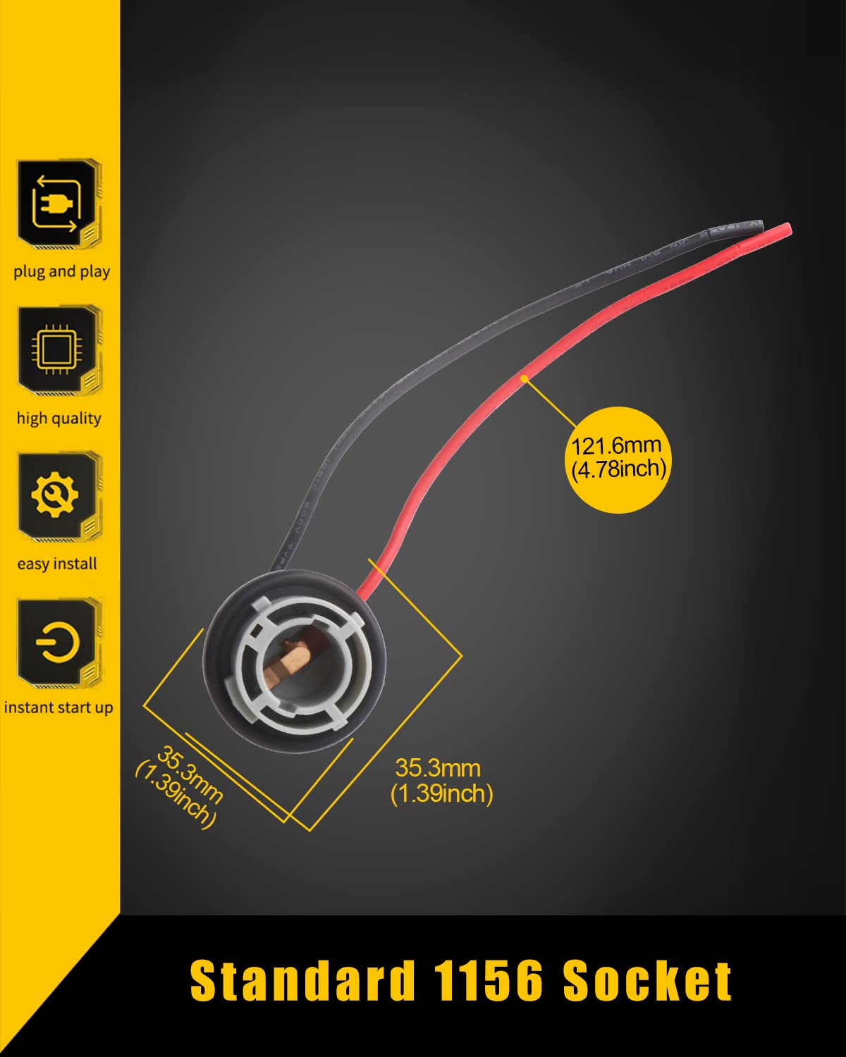 Qasim 1156 Led Bulbs Sockets Ba15S P21W Wiring Harness Adapter For Turn Signal Lights Backup Lights Time Running Lamps-4Packs