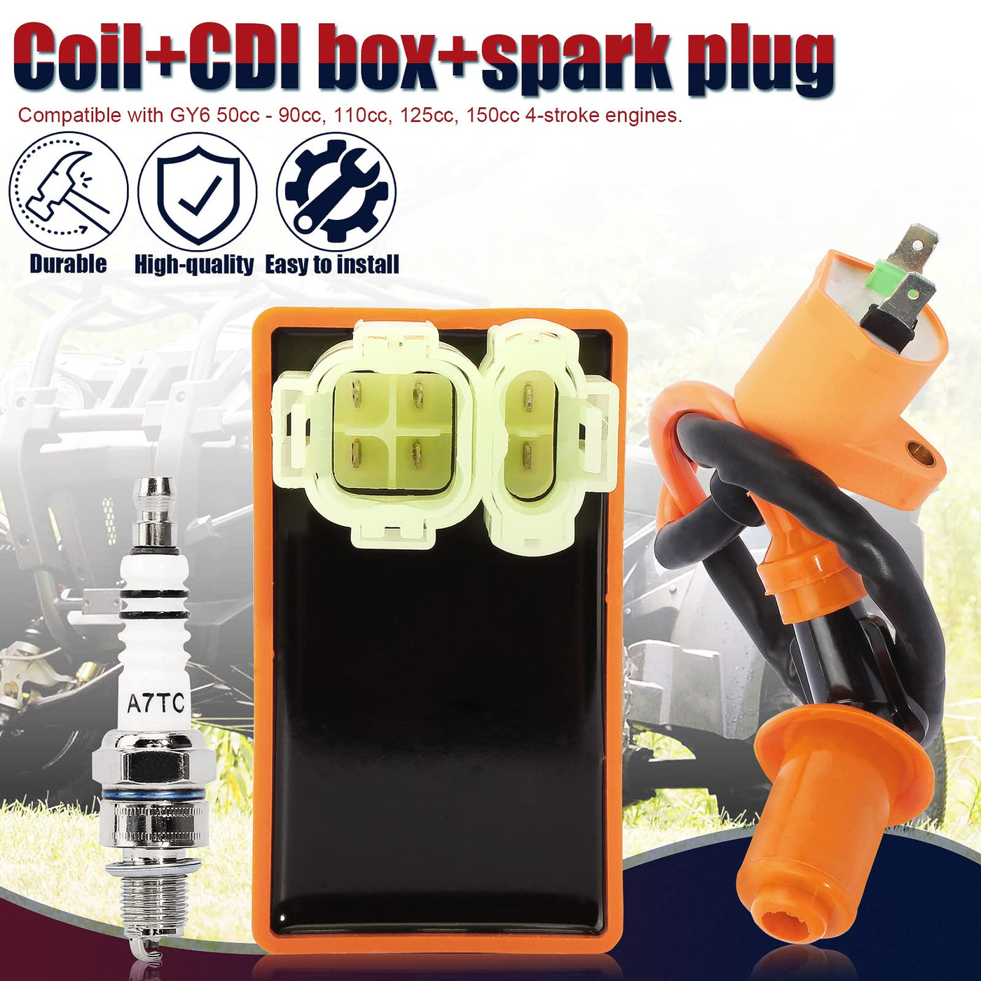 QAZAKY Performance AC CDI + Ignition Coil + Spark Plug A7TC GY6 50cc - 80cc 90cc 110cc 125cc 150cc 4-stroke Engines Scooter ATV Go Kart Moped Quad Go Kart Pit Dirt Racing Bike 139QMB 152QMI 157QMJ