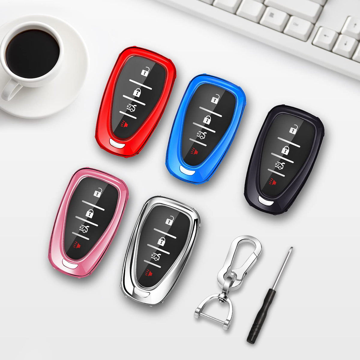 Qbuc For Chevrolet Key Fob Cover Soft Tpu Protector With Keychain For Chevy 2020 2019 2018 2017 2016 Cruze Camaro Malibu Traverse Spark Equinox Sonic Volt Bolt Trax Key Fob Cover Case Shell