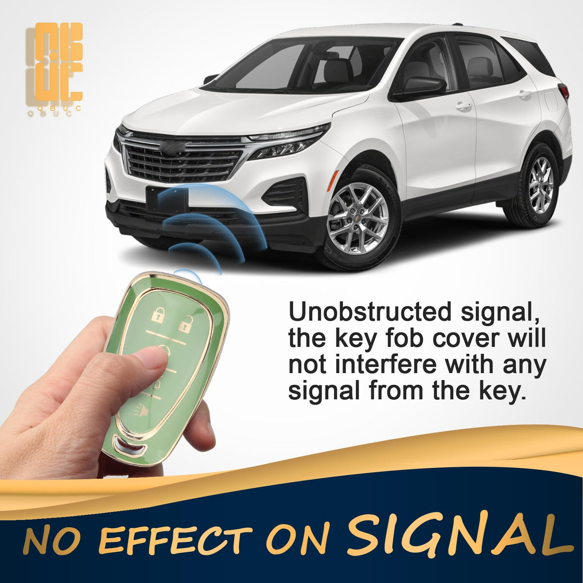 Qbuc For Chevy Key Fob Cover With Keychain Gold Trim Soft Tpu Protection Case Compatible With 2016-2025 Chevy Equinox Malibu Cam