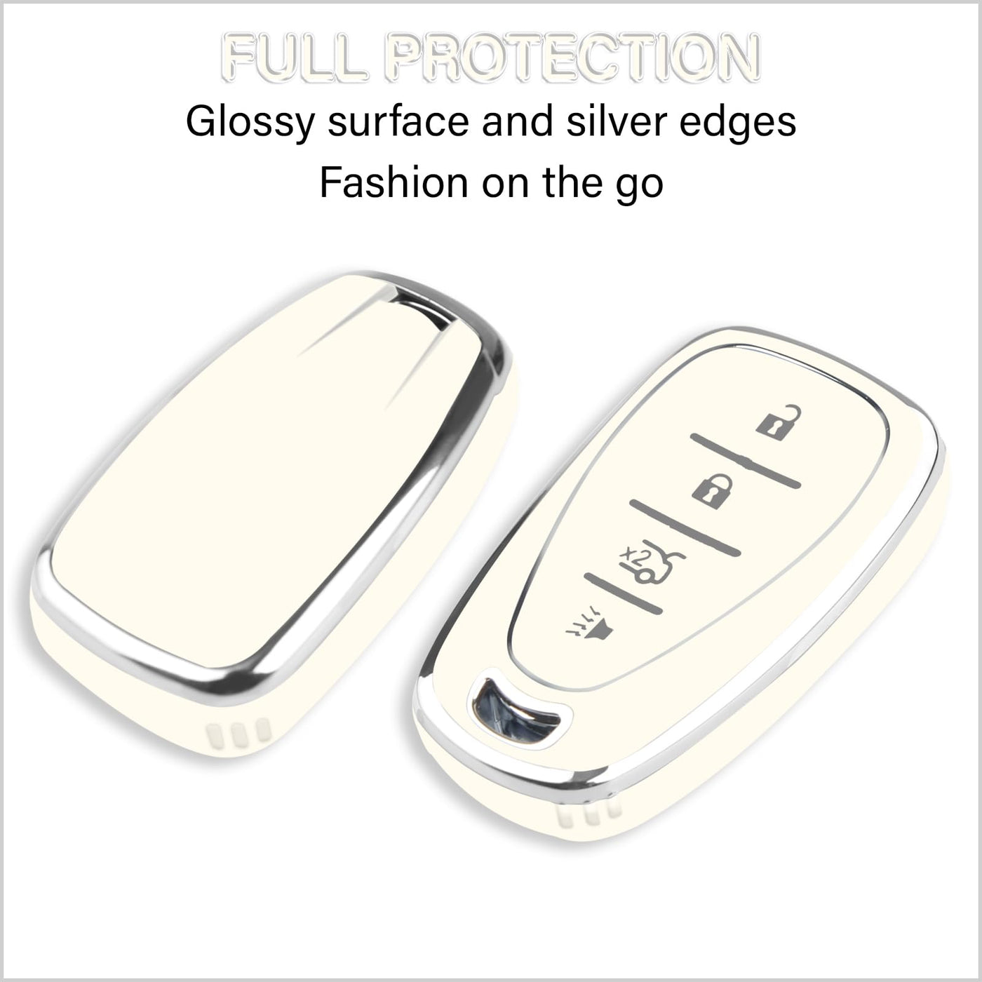 Qbuc For Chevy Key Fob Cover With Keychain Silver Trim Soft Tpu Protection Case Compatible With 2016-2025 Chevy Equinox Malibu C