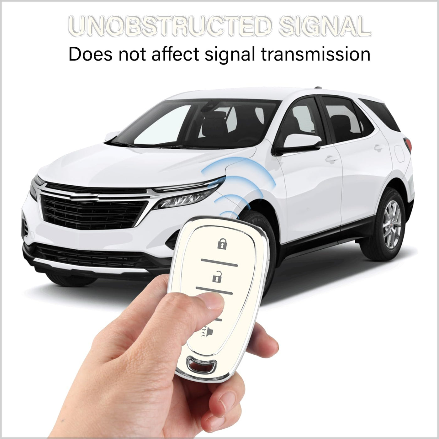 for Chevrolet Car Key Fob Cover Soft TPU Full Protection Key Shell Case Feature:The TPU key cover is soft and elastic, not only light in weight but also does not cause any wear and tear.The key case is fully protected, effectively scratch-proof, scratch-proof, dust-proof and rain-proof.The key fob cover is designed according to the 1:1 original car key button, which fits perfectly.The car key case is designed with silver edge and smooth touch, improving the taste from the details.No influence on the signal, this soft TPU key shell has no influence on the transmission of the remote control signal.Note: Please double check that your keyless entry key fob is the same as the one provided in the key appearance picture belowCar Key Fob Cover Fits Models: Fit For 2019-2021 Chevrolet Blazer RSFit For 2019-2021 Chevrolet Blazer LTFit For 2019-2021 Chevrolet Blazer Premier AWDFit For 2017-2022 Chevrolet Bolt EVFit For 2016-2021 Chevrolet Camaro RSFit For 2016-2021 Chevrolet Cruze premierFit For 2016-2017 Chevrolet Cruze LTFit For 2019 Chevrolet Cruze RSFit For 2018-2021 Chevrolet EquinoxFit For 2018-2021 Chevrolet Equinox premierFit For 2018-2021 Chevrolet Equinox LTFit For 2016-2021 Chevrolet Malibu LTFit For 2016-2021 Chevrolet Malibu premierFit For 2017 Chevrolet Sonic RSFit For 2018 Chevrolet Sonic RS HatchbackFit For 2017-2021 Chevrolet Tracker LTFit For 2018-2021 Chevrolet Traverse PremierFit For 2018-2021 Chevrolet Traverse LTFit For 2017-2021 Chevrolet Trax LTFit For 2018-2020 Chevrolet Trax PremierPackage Includes: 1 PCS Premium TPU Soft Key Case1 PCS silver Keychain and screwdriver