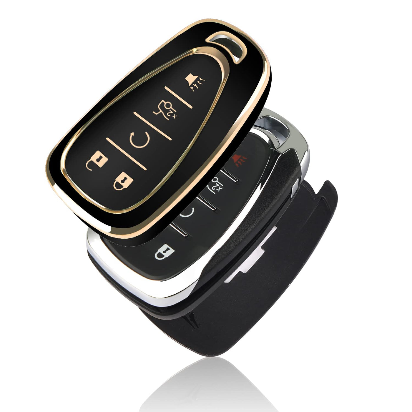 Q: Is this key fob cover compatible with my Chevrolet model?A: Yes, this key fob cover is compatible with various Chevrolet models including Equinox, Malibu, Traverse, Blazer, Camaro, Impala, Cruze, Volt, Bolt, Sonic, Trax, and Tahoe. However, please ensure to double-check your key fob shape against the provided images before purchasing, as some models may differ based on the year of manufacture.