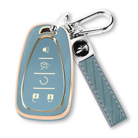 Qbuc For Chevy Key Fob Cover With Keychain Tpu Protector Suitable For Chevrolet Equinox Malibu Traverse Blazer Camaro Impala Cruze Volt Bolt Sonic Trax Tahoe Key Shell Remote Holder(Blue)