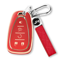 Qbuc For Chevy Key Fob Cover With Keychain Tpu Protector Suitable For Chevrolet Equinox Malibu Traverse Blazer Camaro Impala Cruze Volt Bolt Sonic Trax Tahoe Key Shell Remote Holder(Red)