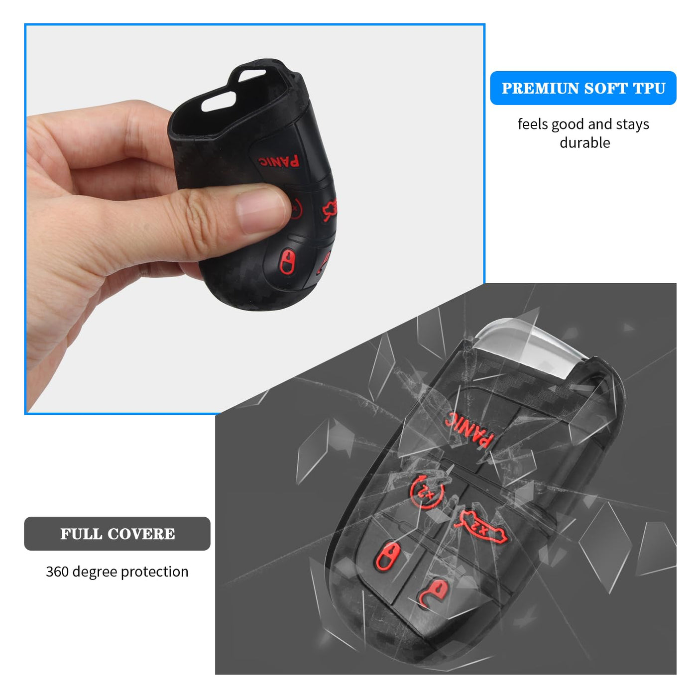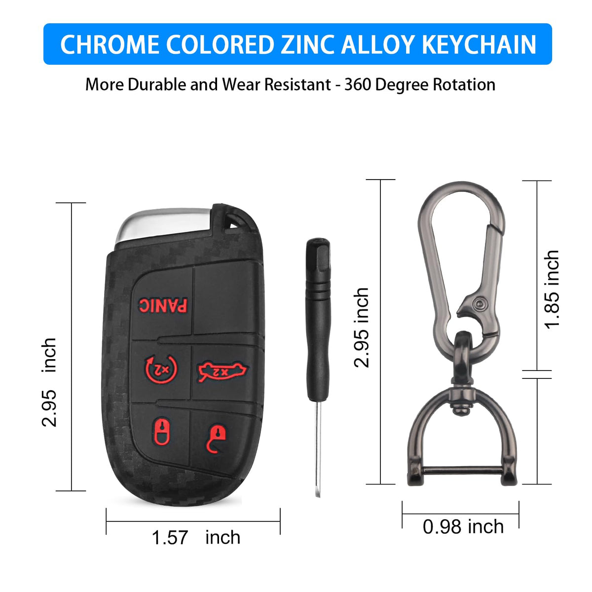 Package Includes:1 x Carbon Fiber Silicone Key Case, 1 x Metal Key Chain, 1 x Screwdriver. MATERIAL: Silicone Made of silicone material, comfortable to touch, it can effectively protect your keys from scratches and abrasions. PLEASE NOTE: 1. Please kindly refer to the SECOND GALLERY IMAGE before order CERTAINLY, because these covers only fit for Jeep Dodge Chrysler remote key. 2. Please check the size and shape carefully to ensure you get the right key fob cover. 3. Even if the models are the same, car keys may vary depending on the year of manufacture. Compatible Models(for reference only): for 2014-2019 Grand Cherokee (WK2),for 2014-2019 Cherokee (KL),for 2015-2018 Renegade (BU),for 2018-2019 Compass (MP),for 2011-2019 Dodge Charger,for 2015-2019 Dodge Challenger, Chrysler 300.
