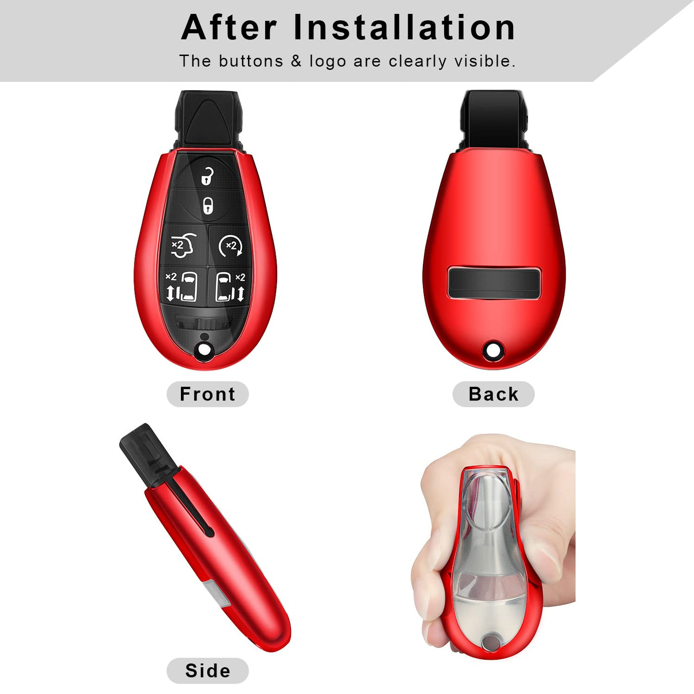 Qbuc For Dodge Key Fob Cover With Keychain Tpu Key Case Compatible With 2008-2018 Dodge Ram Jeep Chrysler Model Accessories (Red