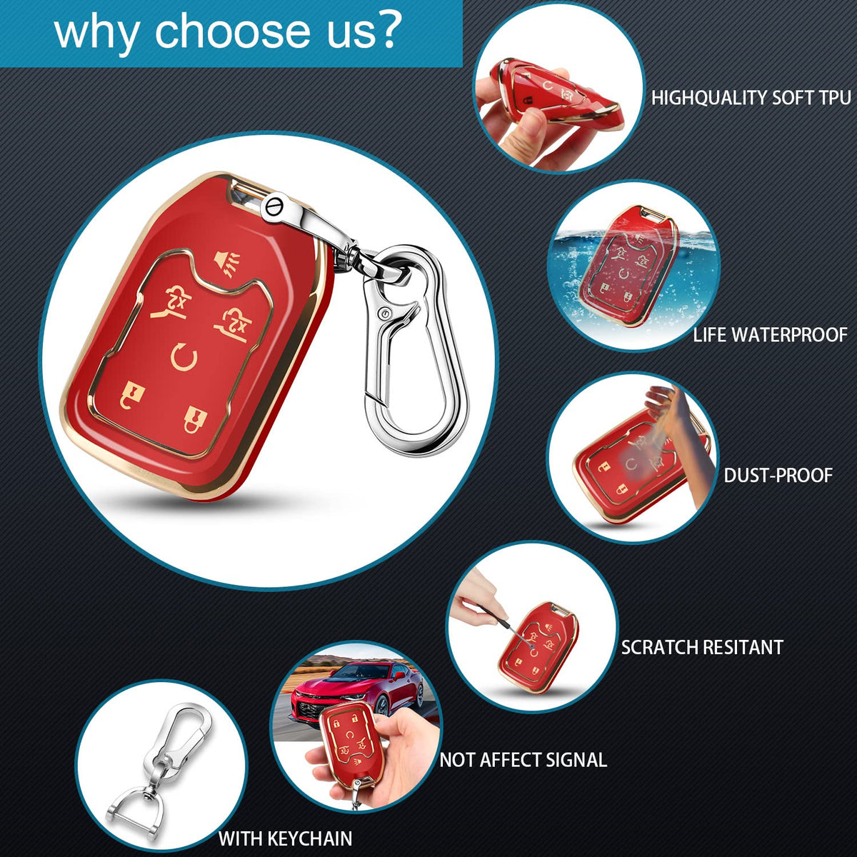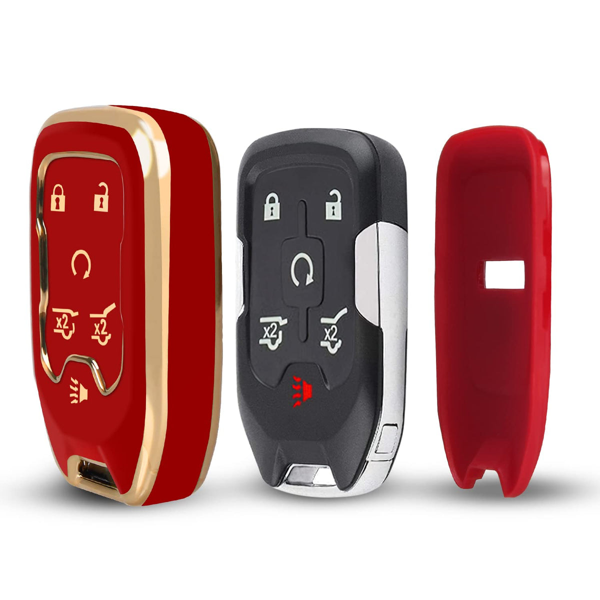 Qbuc For Gmc Key Fob Cover Tpu Protector Case With Keychain For 2019-2021 Chevrolet Chevy Silverado And Gmc Sierra 1500 2500Hd 3500Hd Terrain Acadia Yukon Key Cover Smart Remote 3/4/5/6 Button(Red)