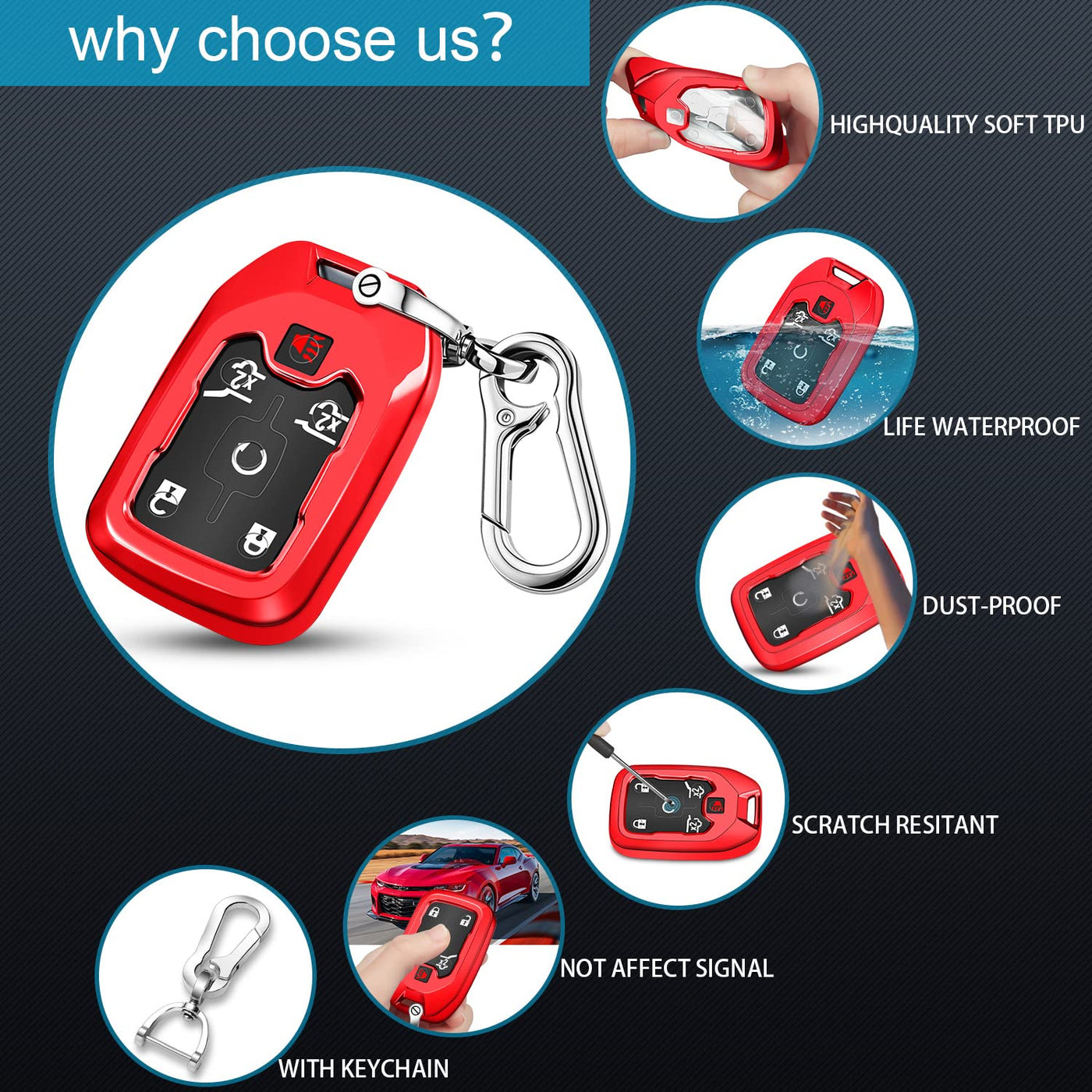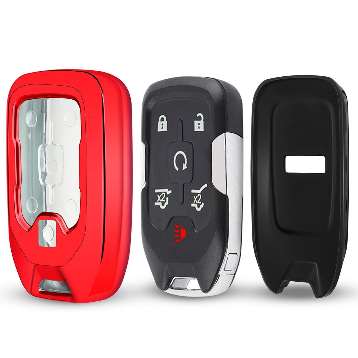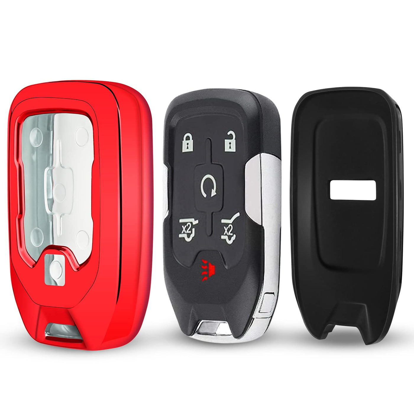 Qbuc For Gmc Key Fob Cover Tpu Protector Case With Keychain For 2019-2021 Chevrolet Chevy Silverado And Gmc Sierra 1500 2500Hd 3500Hd Terrain Acadia Yukon Key Cover Smart Remote 3/4/5/6 Button(Red)