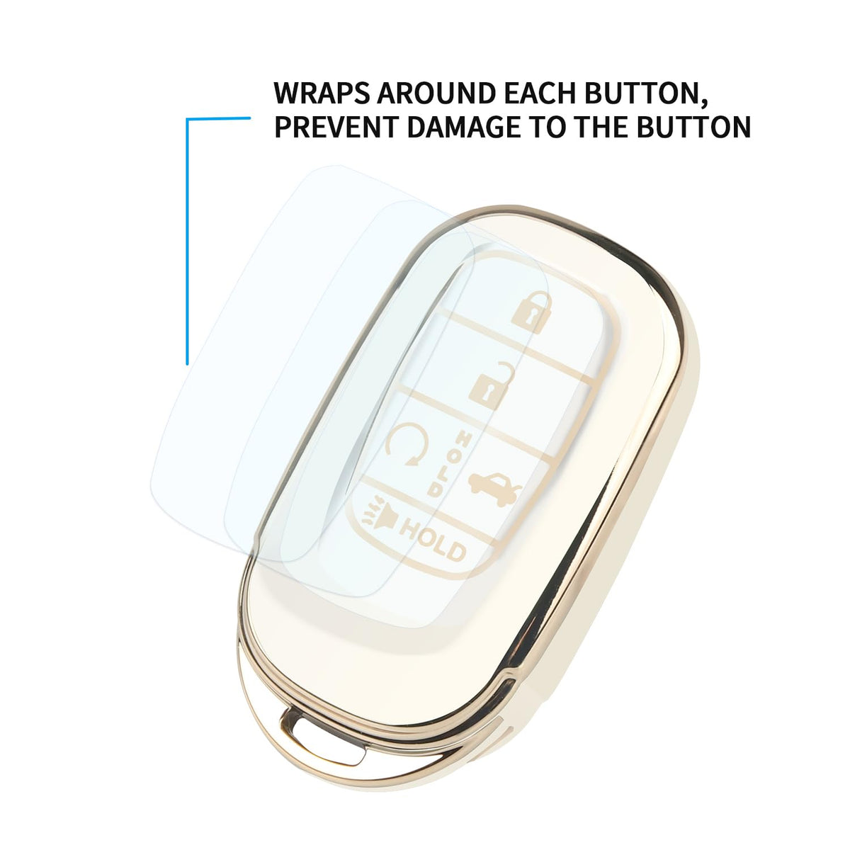 Product Description:This car key cover is made of high-quality silicone material that prevents scratches, dents, and damages. It comes in various colors,add a touch of personality to your key. Installation is easy, and the precise fit allows you to access all buttons and functions with ease. Protect your key and showcase your unique style with our key fob cover.Fit models below with Smart Key (reference only):for Honda Accord 2022-2023for Honda CR-V 2023for Honda Civic 2022-2023for Honda Civic Hatchback 2022-2023for Honda Pilot 2023for Honda HR-V 2023Warm Tips:Even if the type of the car is the same, the car key fob might be different based on the different year of manufacturing.Package Included:1 X Key Case1 X Leather Key Chain.Note: Key Fob is not included
