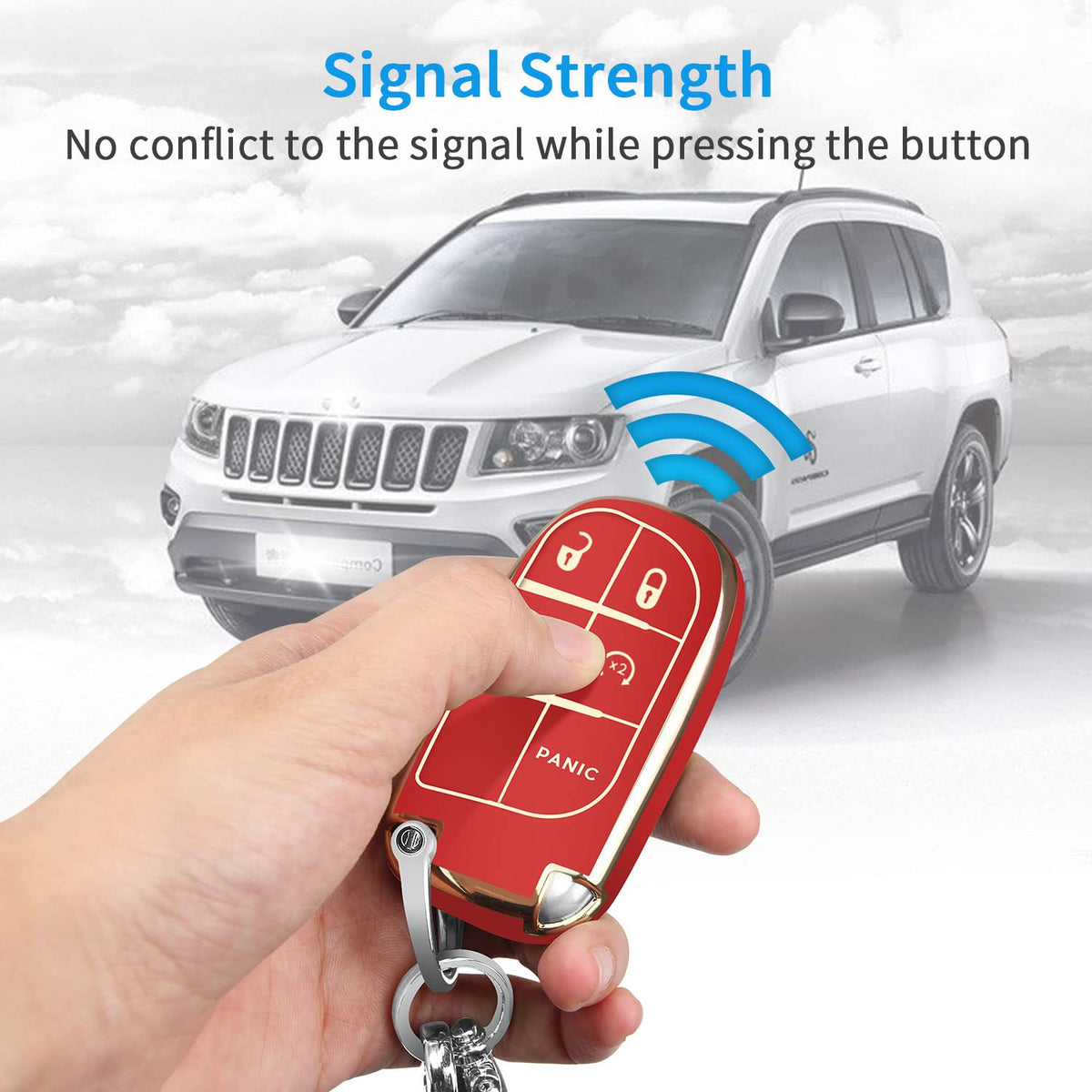 Qbuc For Jeep Key Fob Cover With Keychain Compatible With Grand Cherokee Renegade Compass Durango Key Shell Case Protection