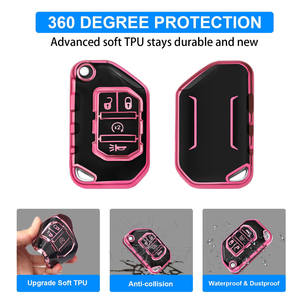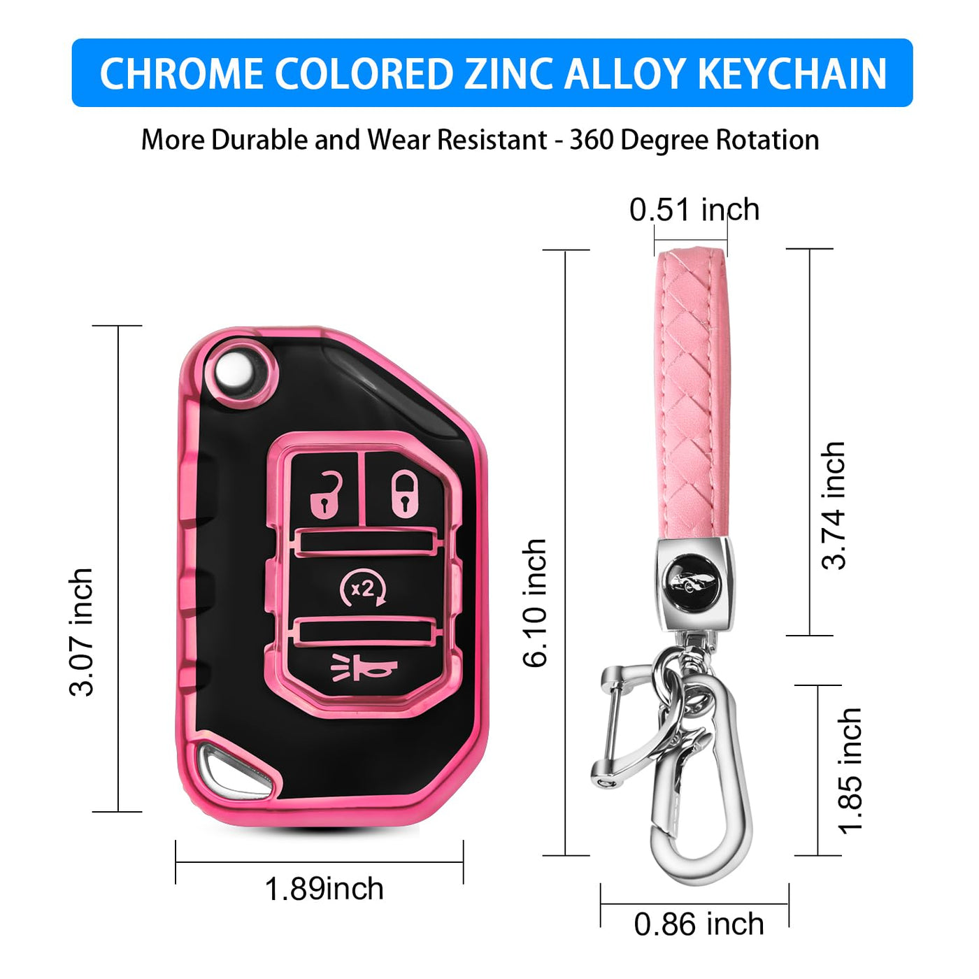 QBUC for Jeep Key Fob Cover with Keychain Compatible with Jeep Wrangler JLU JL Gladiator Rubicon JT Car Flip Key (pink)