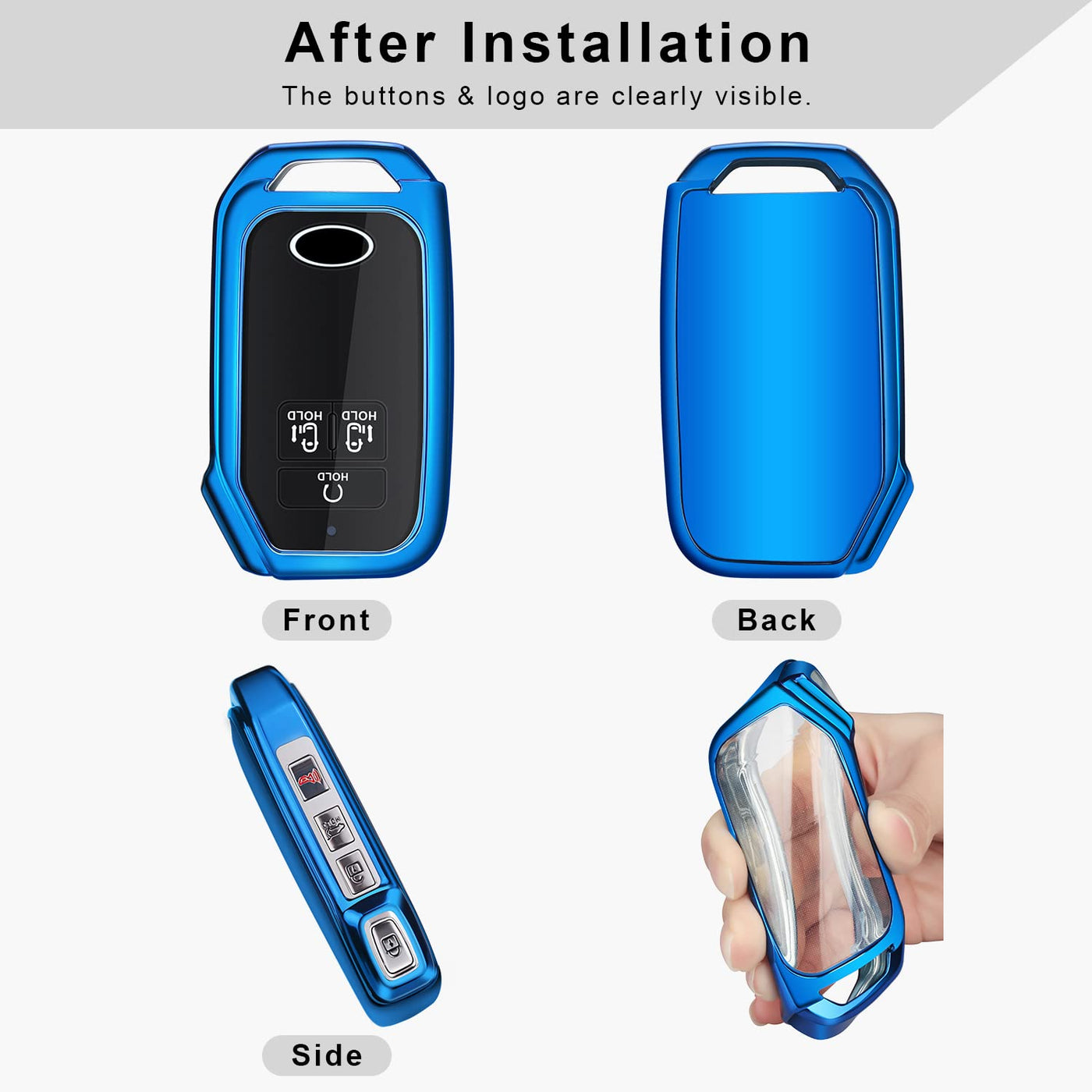 【PAY ATTENTION TO FIT MODEL】The for Kia key fob cover is ONLY DESIGNED FOR SPECIFIC MODEL (NOT ALL KIA MODELS). It's for 2022 2023 Kia Carnival (3 BUTTONS ON FRONT SURFACE ONLY) smart remote. NOTE: PLS CHECK THE COMPATIBLE KEY FOB IN 3RD PICTURE CAREFULLY BEFORE PURCHASING. | 【Durable Materials】The for Kia key fob case is made of premium soft TPU, which is healthy, smooth, comfortable and in lightweight, does not add much bulk or size to the fob. The chrome finish with strong color fastness (3 layer plating) will keep your key look new and cool. | 【Personalized Design】The for Kia key cover is designed in 4 different fashion high gloss colors. The brightness makes your key out of the ordinary. Enable you to find and distinguish your fob easily. | 【360° Protection】The for Kia key case will offer all-around effective protection to your key from collision, dust, wear, scratches and other damages without affecting the signal transmission. And the button cover will prevent you from accidentally pressing the key. | 【Easy Installation】The for Kia key holder is easy to install by just putting the key in and fix with the keychain. The package include 1*case, 1*keychain, 1*screwdriver (Key fob is NOT included). It is a wise investment for your expensive key remote.