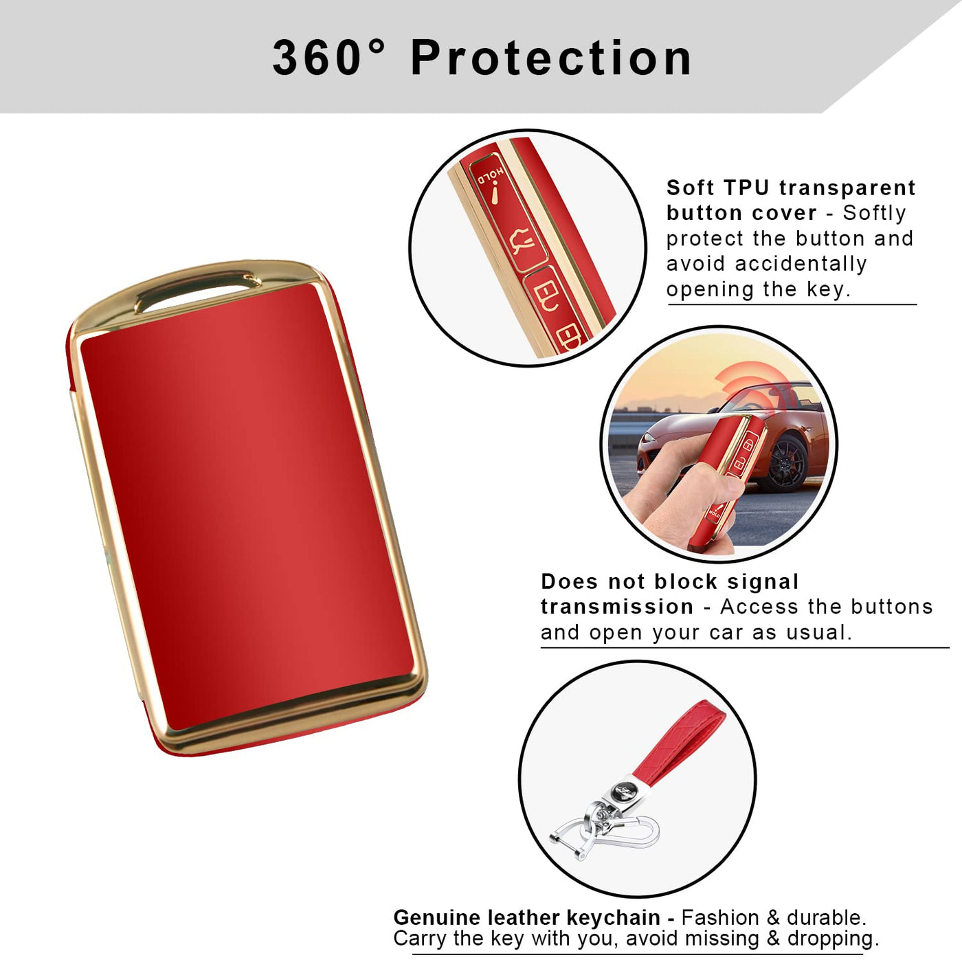 Qbuc For Mazda Key Fob Cover Case With Leather Keychain For 2019-2023 Mazda 3, Mazda 6, Mazda 3 Hatchback, 2020-2023 Mazda Cx-5, Cx-9, Cx-30 (2/3/4 Buttons) (Red)