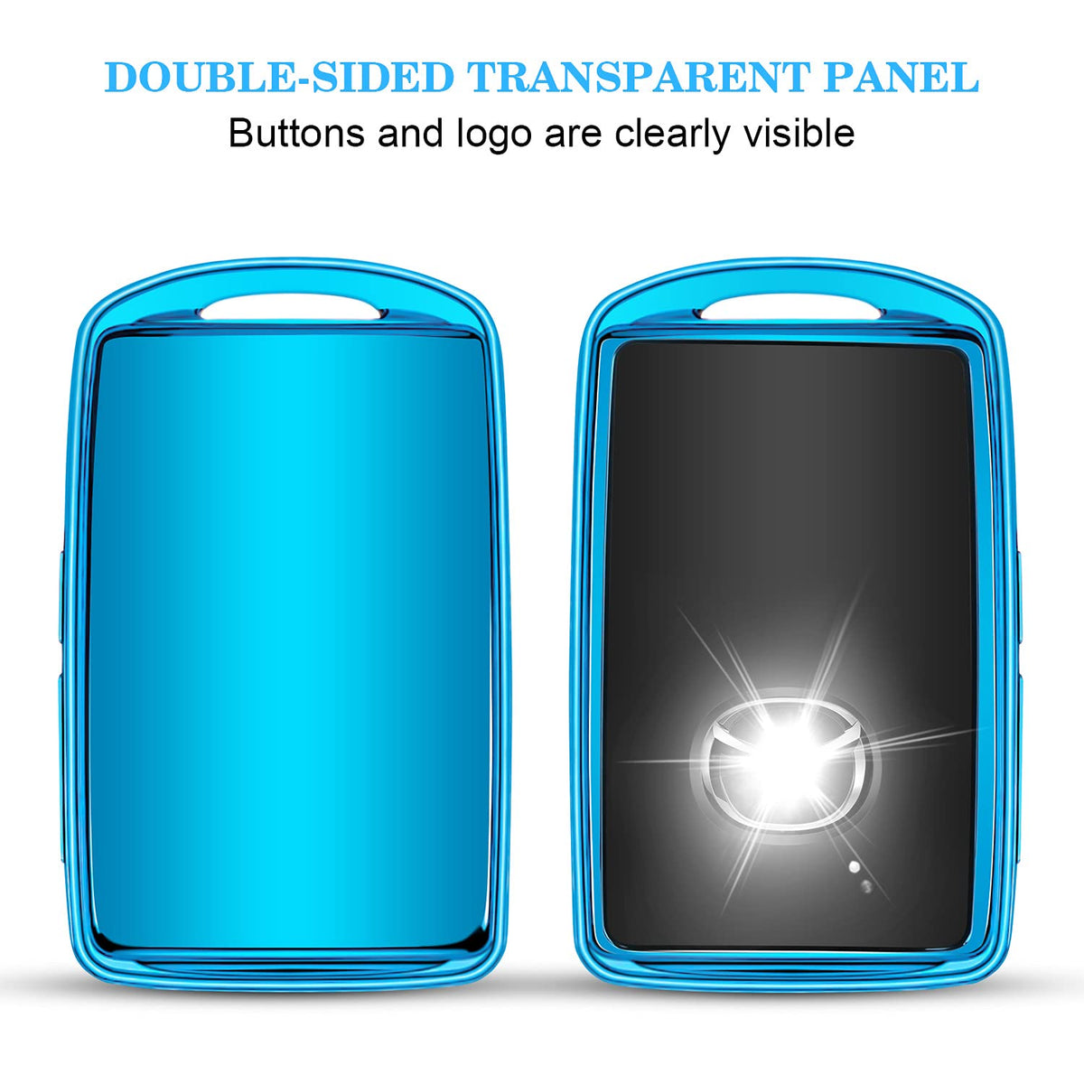Qbuc For Mazda Key Fob Cover,Soft Tpu Protector Key Holder With Keychain For 2019-2021 Mazda 3,For Mazda 3 Hatchback,For 2020-2021 Mazda Cx-5,Cx-30,Cx-9,Cx-12 3-4-Buttons Smart Key(Blue)