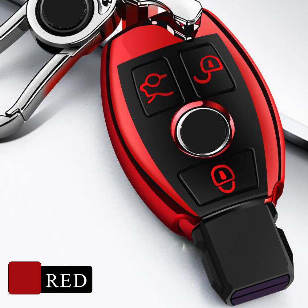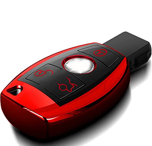 Qbuc For Mercedes Benz Key Fob Cover, Key Fob Case For Mercedes Benz C E M S Cls Clk Glk Glc G Class, Tpu Full Protection Key Fob Shell Compatible Keyless Smart Key Fob(Red)