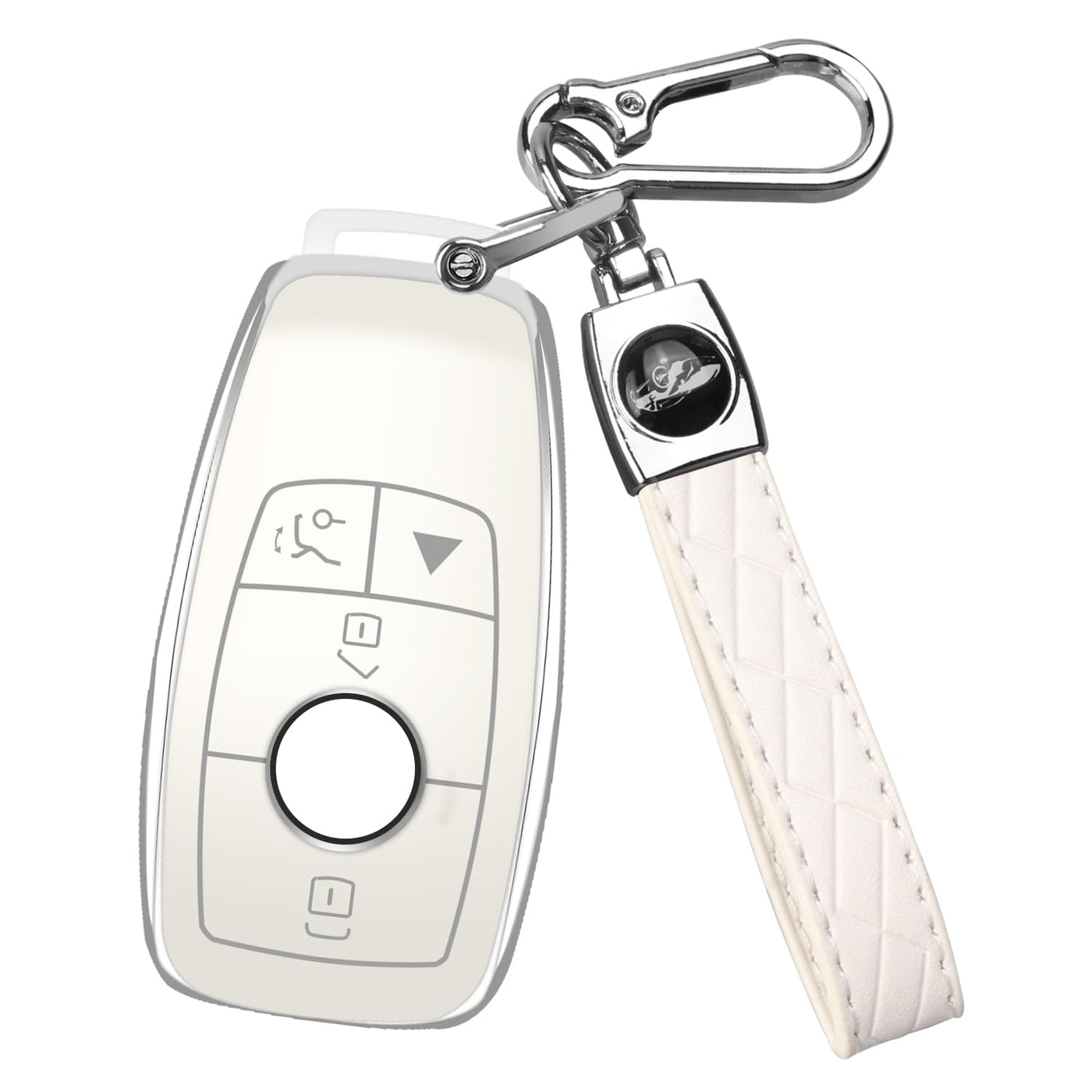 Qbuc For Mercedes Benz Key Fob Cover With Keychain,Compatible With C E R S G S Cls Clk Glc Ml Gle Gls Sl Slr Mclaren Amg Key (Wh