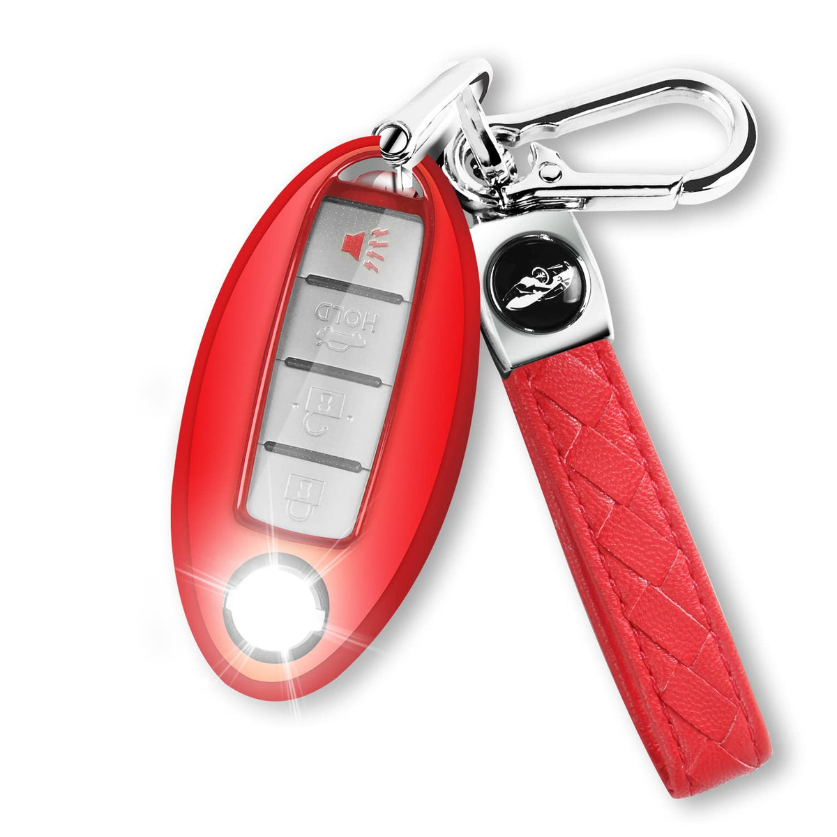 Qbuc For Nissan Key Fob Cover With Keychain, Soft Tpu Key Shell Case Suitable For Altima Rogue Maxima Sentra Infiniti Armada Sedan Murano Pathfinder Frontier Smart Remote Key Holder(Red)