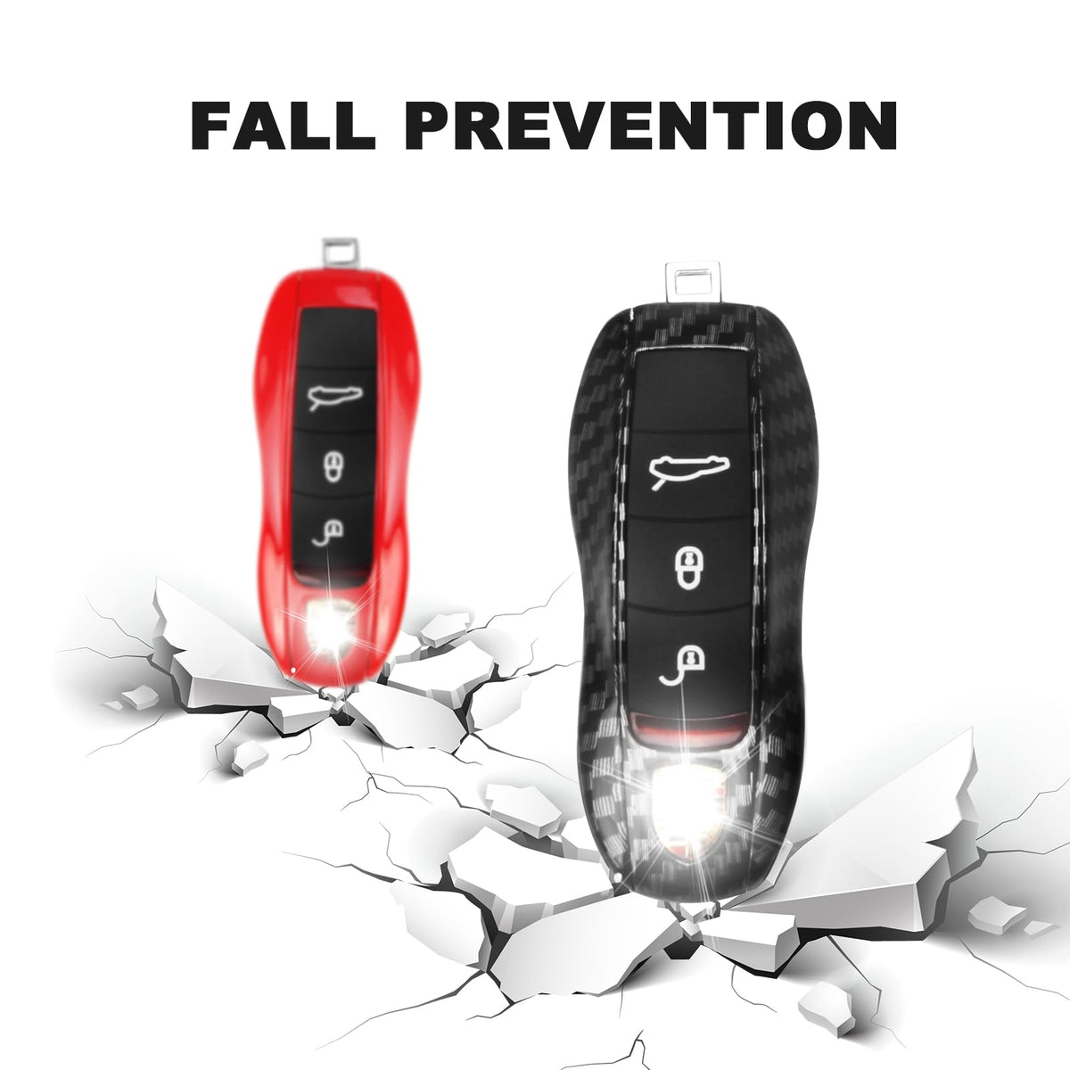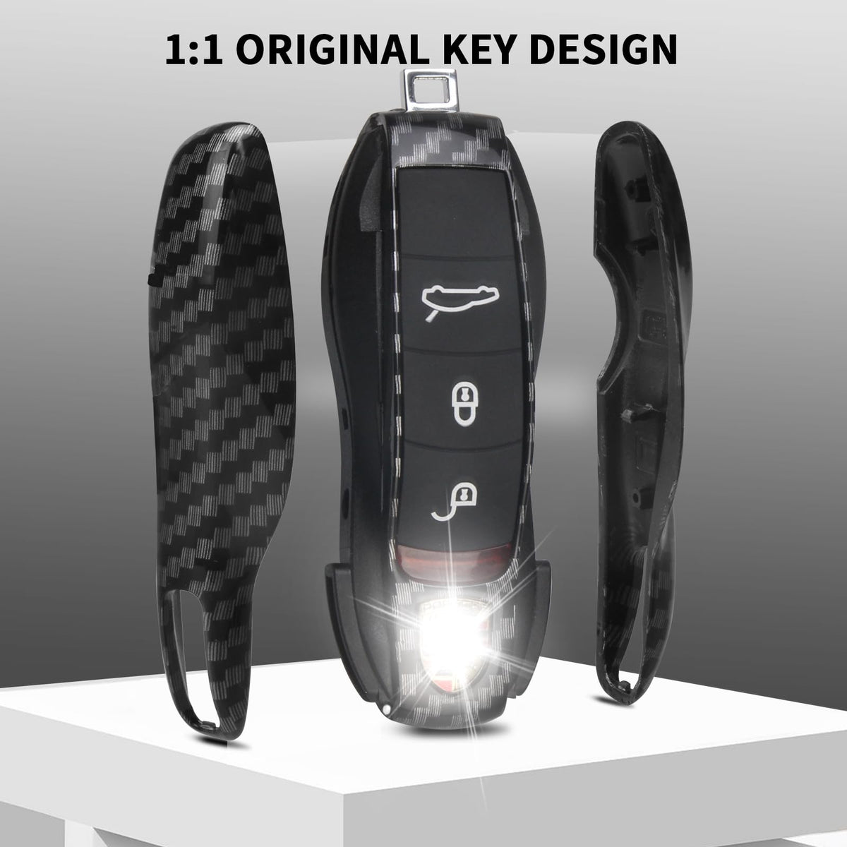 Qbuc For Porsche Key Fob Cover,3-Piece Painted Key Shell Compatible With Porsche Cayenne Panamera Macan 911 Boxter Cayman (Carbo