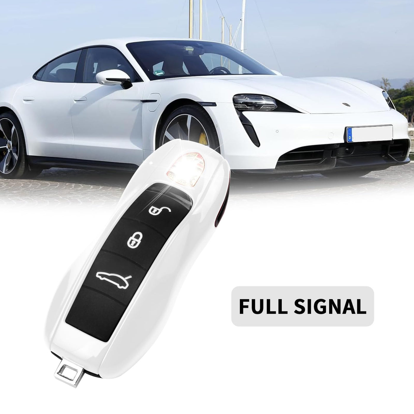 Qbuc For Porsche Key Fob Cover,3-Piece Painted Key Shell Compatible With Porsche Cayenne Panamera Macan 911 Boxter Cayman (White