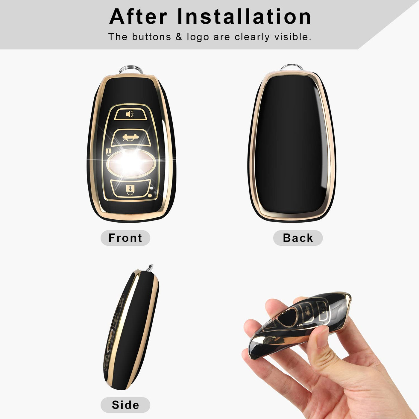 Qbuc For Subaru Key Fob Cover Case With Genuine Leather Keychain For Subaru Forester Crosstrek Ascent Outback Legacy Wrx Etc (Bl