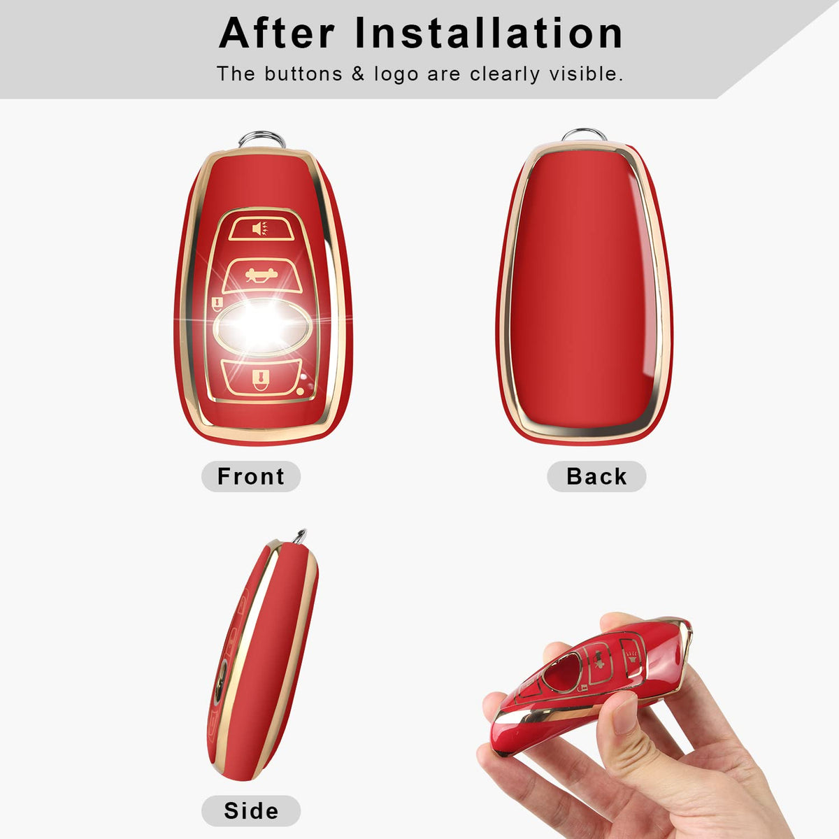 Qbuc For Subaru Key Fob Cover Case With Genuine Leather Keychain For Subaru Forester Crosstrek Ascent Outback Legacy Wrx Etc (Re
