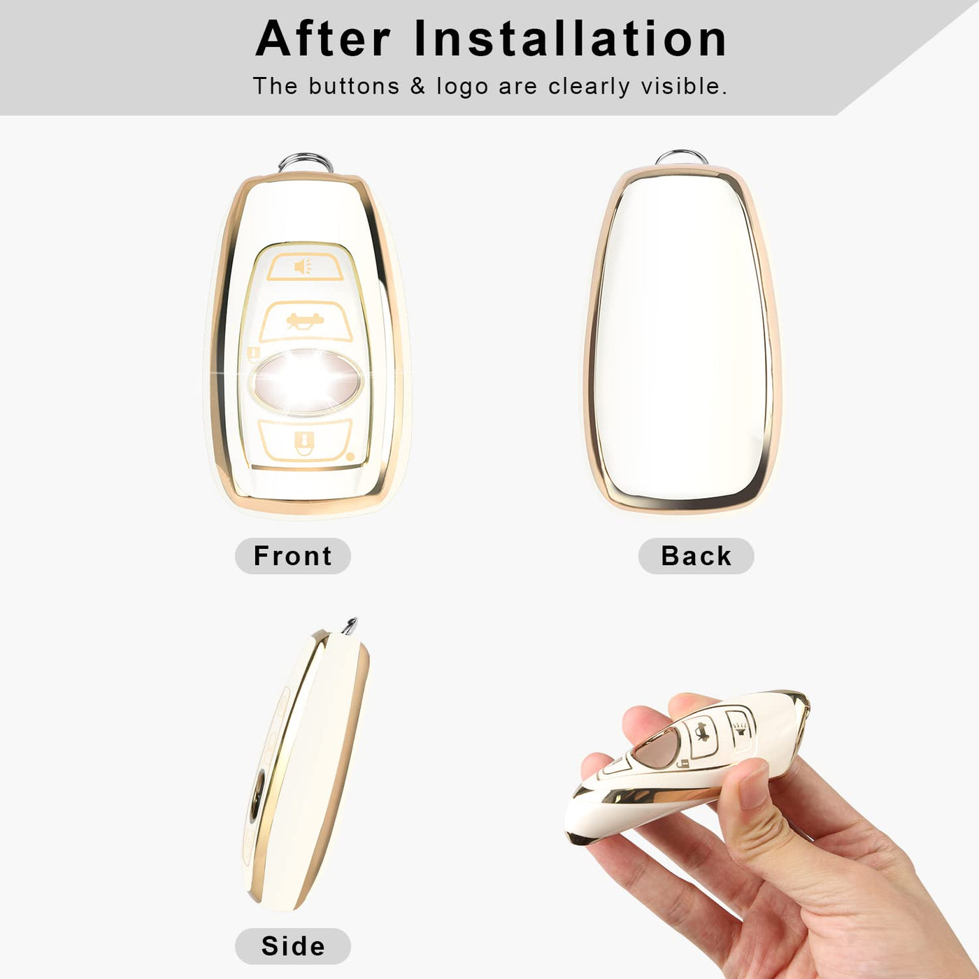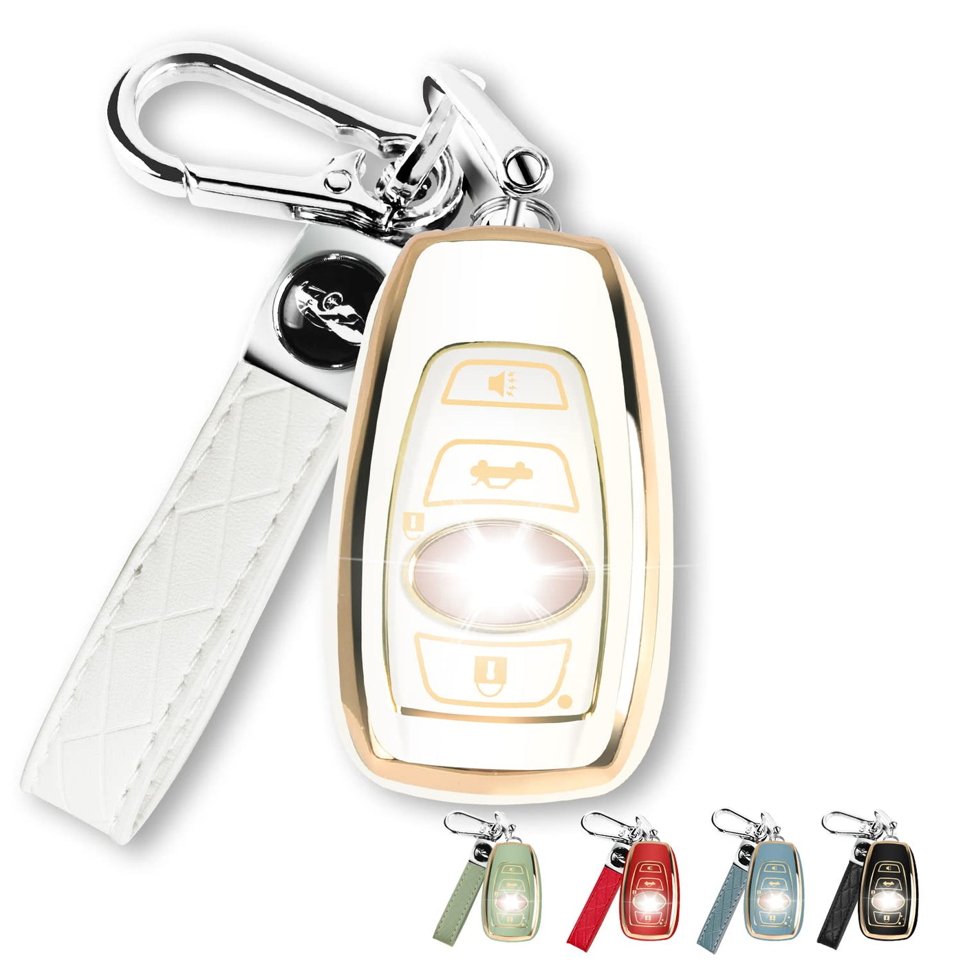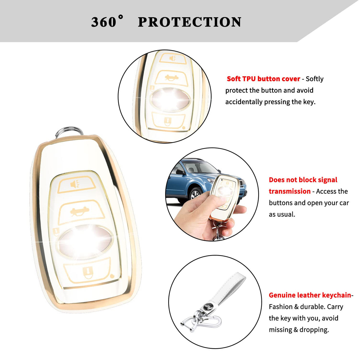 Qbuc For Subaru Key Fob Cover Case With Genuine Leather Keychain For Subaru Forester Crosstrek Ascent Outback Legacy Wrx Etc (Wh