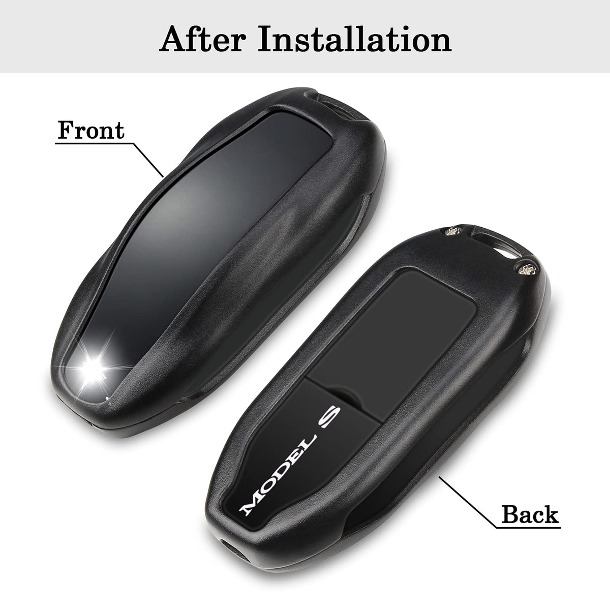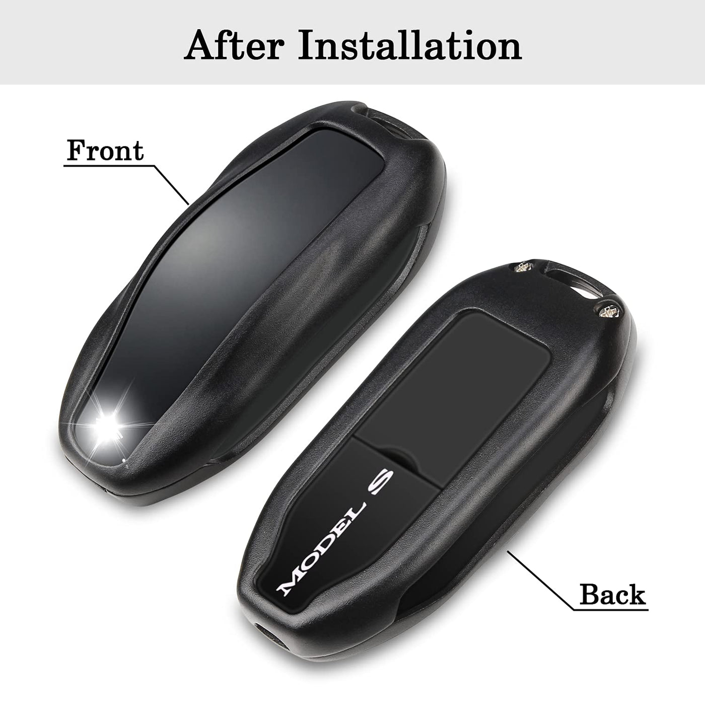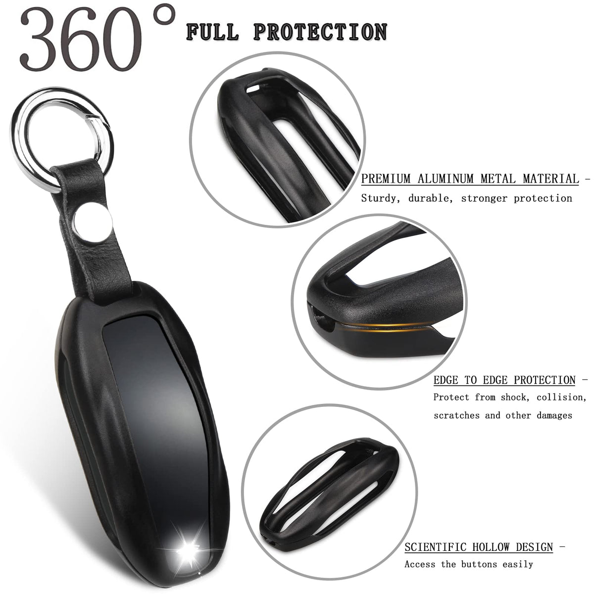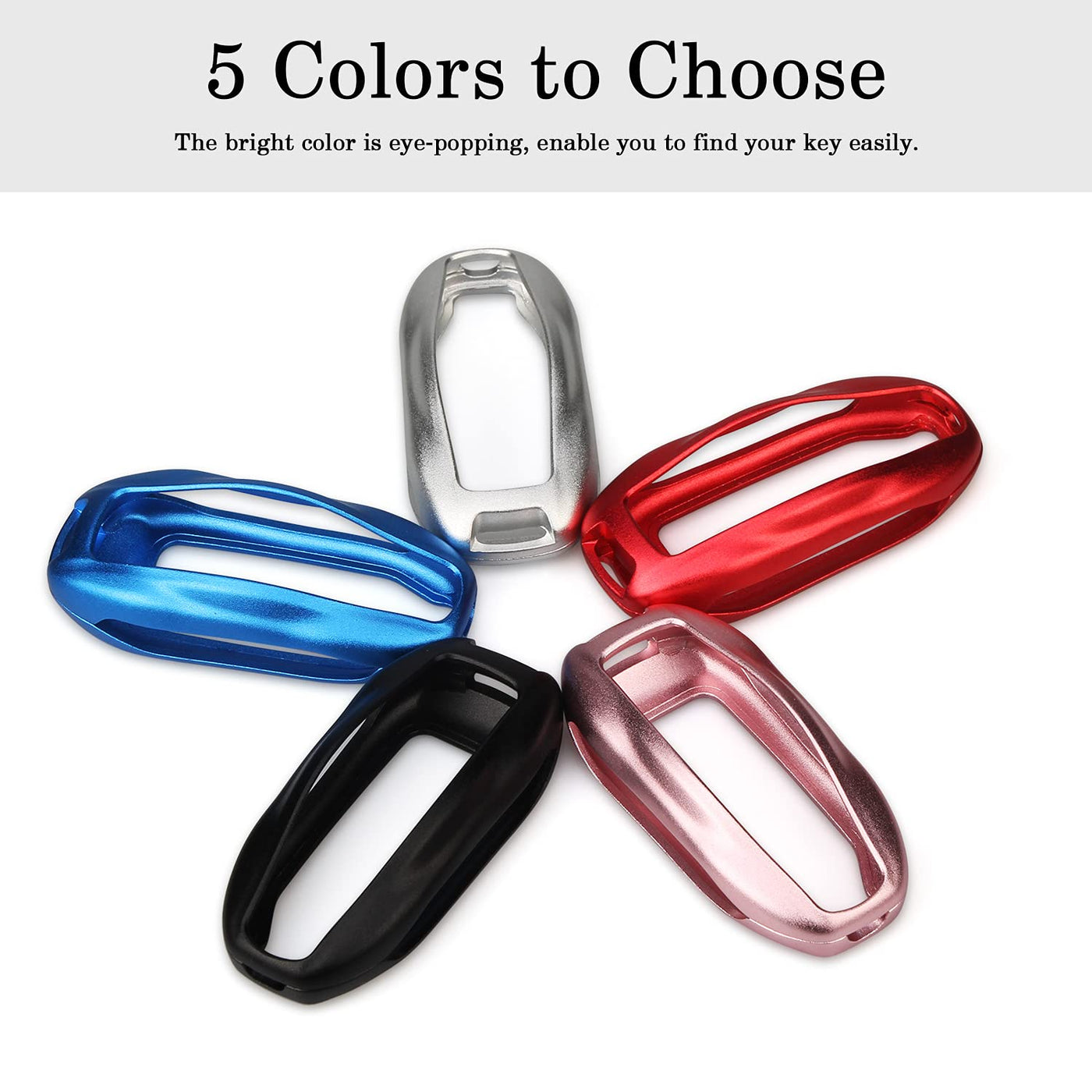 ?Custom Fit for Tesla Key Fob Accessory?The compatible with Tesla keyfob holder is designed for Tesla Model S, Model 3 and Model Y smart remote base on original data. Fits perfectly and provides great protection to your Tesla remote. | ?Durable Materials?The for Tesla smart remote protective cover is made of high quality aluminum metal, which is rustproof, sturdy but in lightweight (shell thickness is around 1mm). It not only makes your key look deluxe, but also provides stronger protection than other materials. | ?Personalized Design?The scientific hollow design of the for Tesla keychain case, allows you to access the buttons easily. The strong keychain is for easy carrying and to avoid dropping. And you will find your key easily because of the bright color cover. | ?360-degree Protection?The compatible with Tesla Model S/3/Y key fob case will offer all-around strong effective protection to your key from shock, collision, scratches and other damages. It is a necessity for your expensive key remote. | ?Easy Installation?The for Tesla Model Y/S/3 key protector is easy to install with screws. The package include one case, keychain, screws, screwdriver, and sticky paddings (stick to the inside of the metal to gently separated the key from the metal, avoid from scratching.)