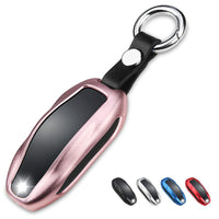 Qbuc For Tesla Key Fob Cover With Keychain Compatible With Tesla Model S/3/Y Keyless Protection Case Smart Remote Accessory (Pink)